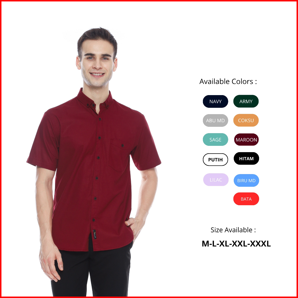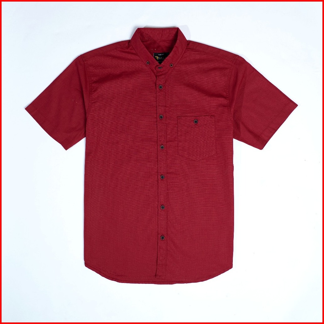 Rivilla Kemeja Pria Polos Pendek Slim Fit Maroon