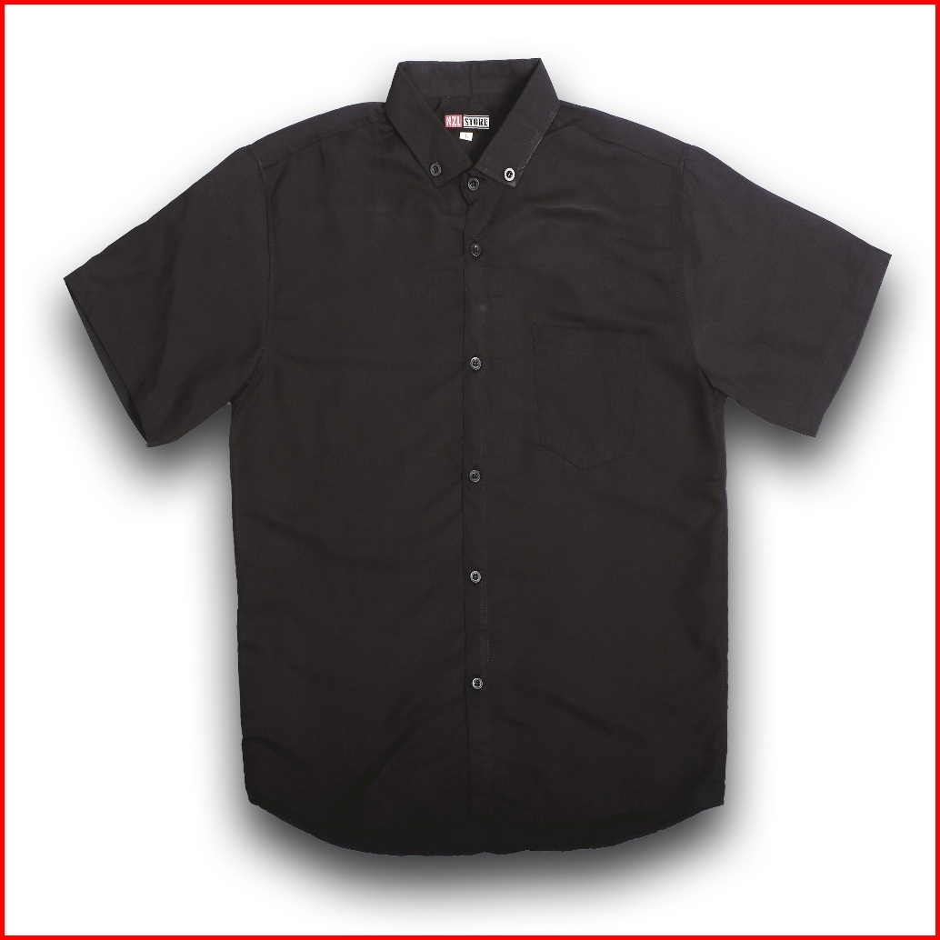 Nzl - Kemeja Polos Pria Lengan Pendek Hitam