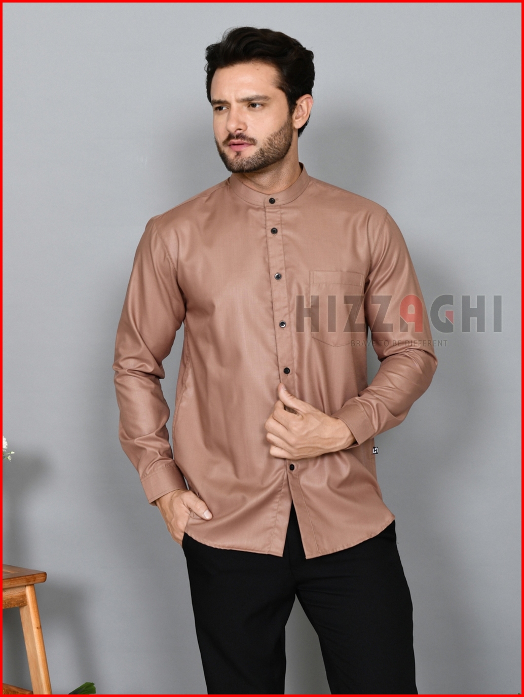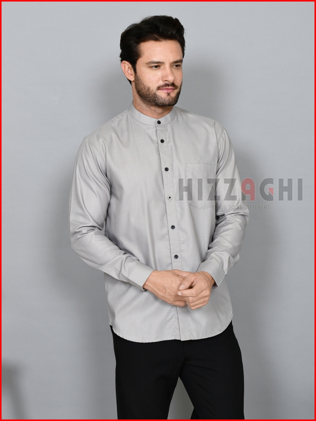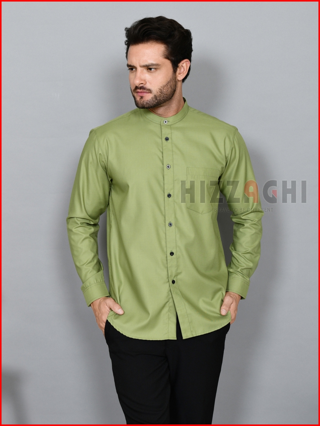 Hizzaghi Kemeja Pria Lengan Panjang Polos Kerah Shanghai