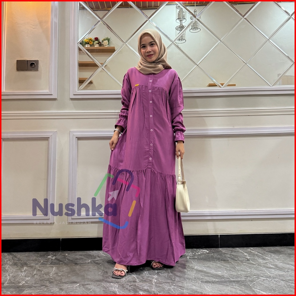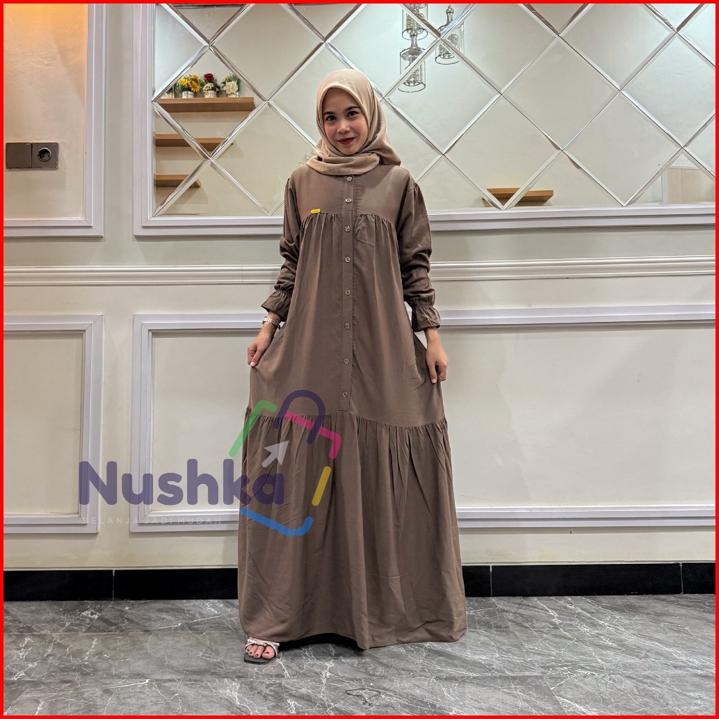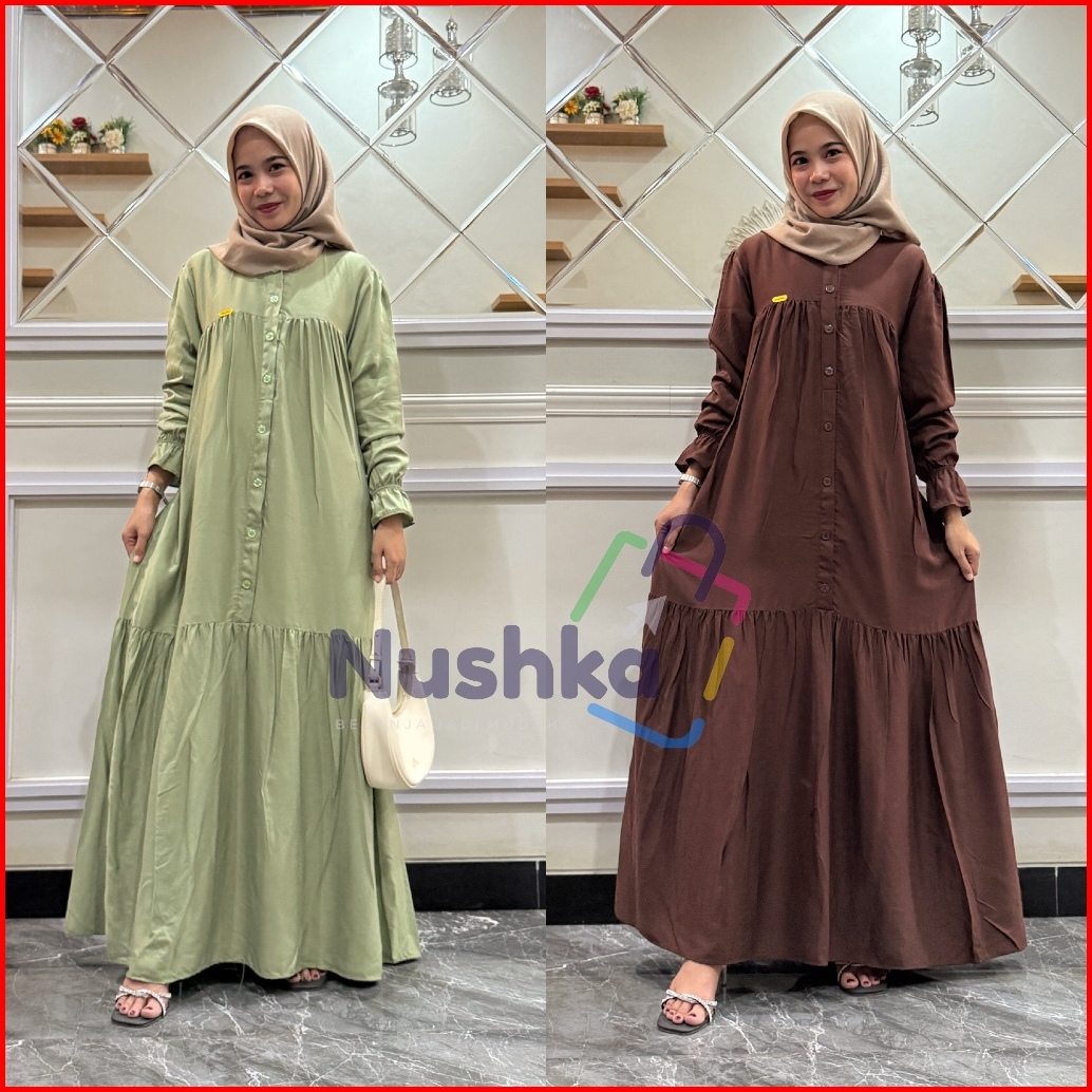 Gamis Mahira Rayon Twill Gamis Lengan Balon Gamis Kancing Busui Premium Quality