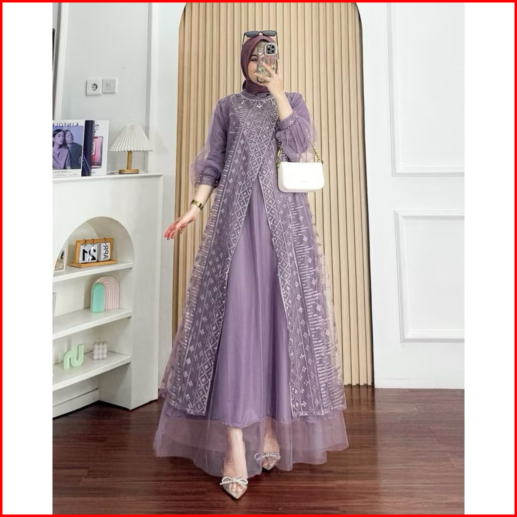 Radikaolshop Keyla Dress Gaun Pesta Muslimah Terbaru Bahan Tile Mix Brukat Mutiara