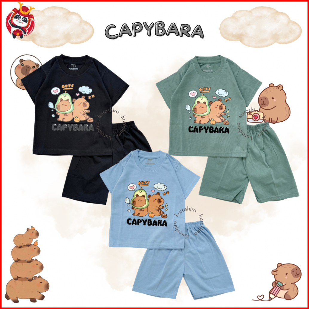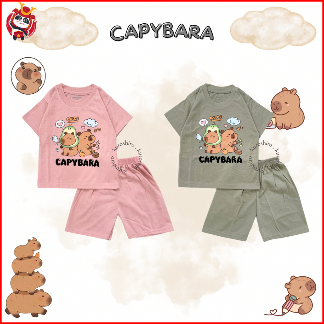 Kuroshiro - Setelan Baju Anak 1-9 Tahun Capybara Kaos Anak Perempuan Laki Laki