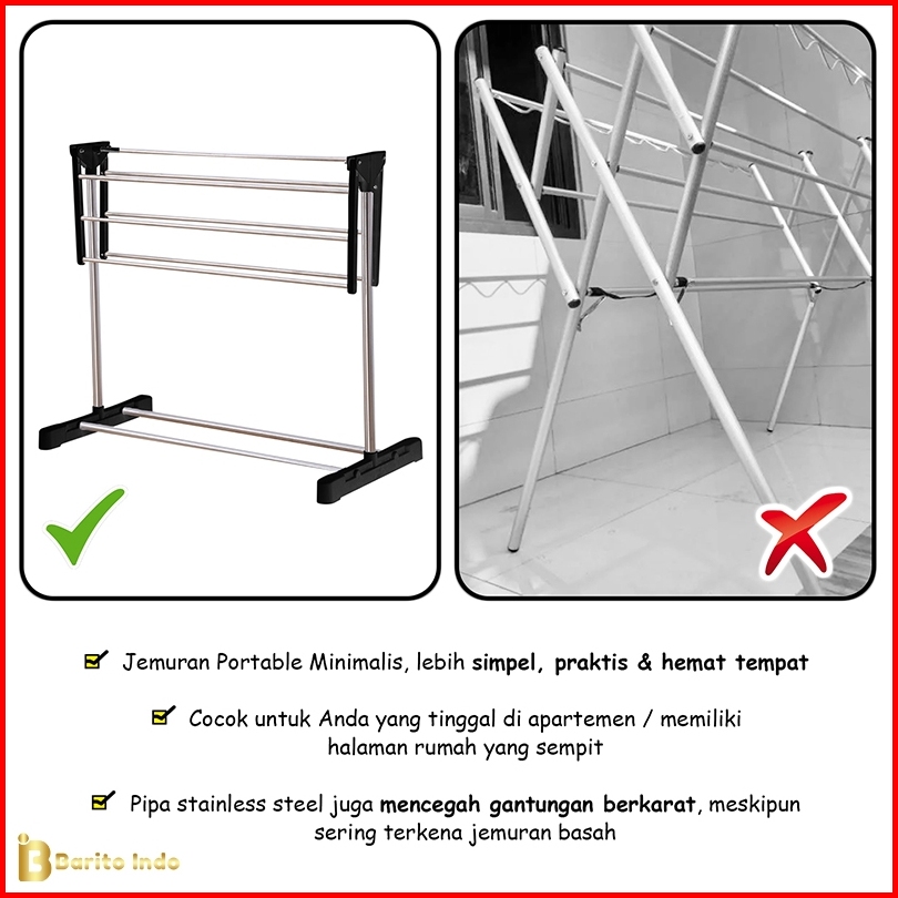 Baritoindo Rak Jemuran Lipat Handuk Pakaian Sepatu Stainlees Gantungan Pengering Baju Bayi - B01b