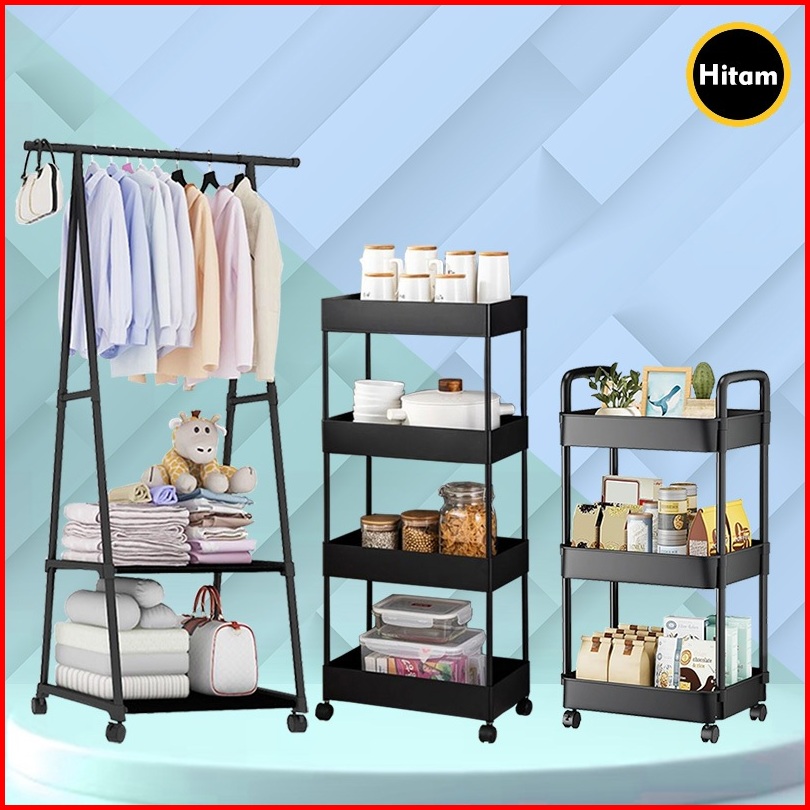 Ss Paket Triple Rak Besar Rak Gantungan Baju Rak Susun 4 Tingkat Persegi Rak 3 Susun Troly