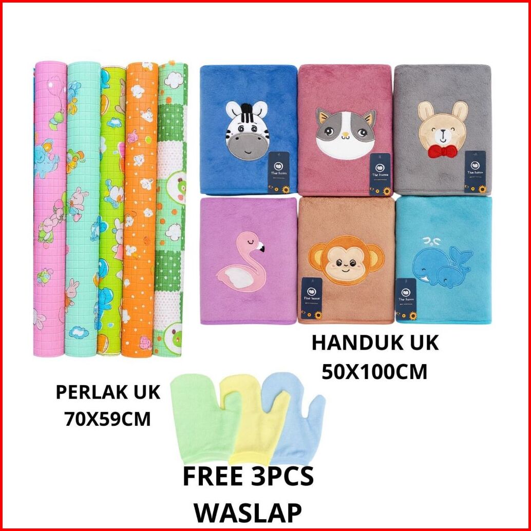 Paket Hemat - Perlak Bayi Handuk Bayi Bahan Mikrofiber Free Waslap 3pcs