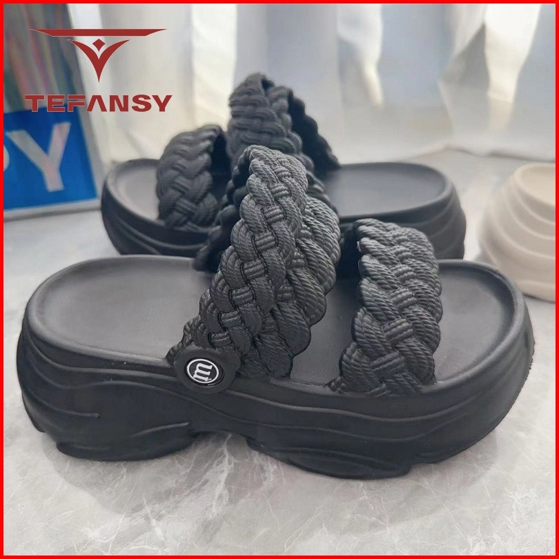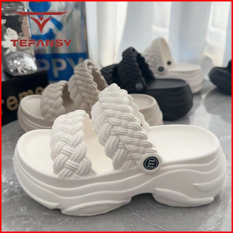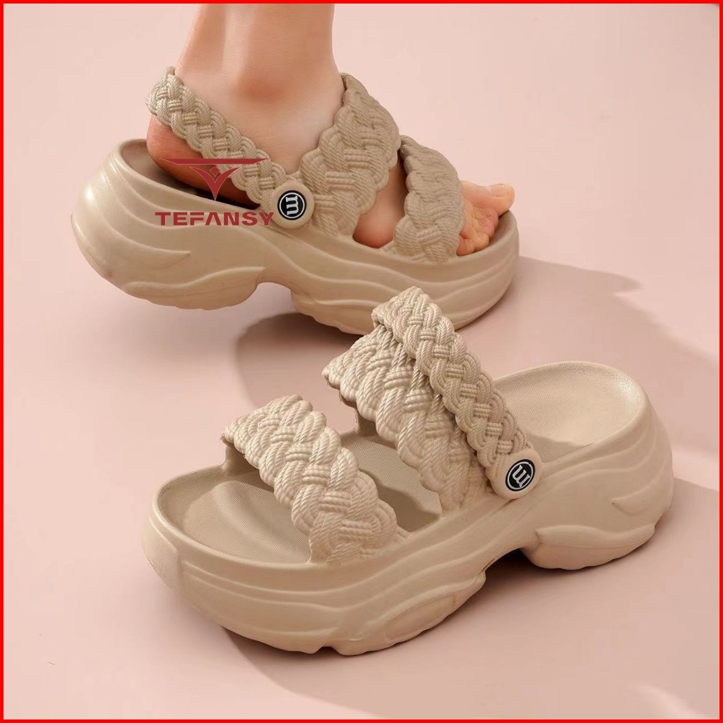Tefansy Sandal Wanita Karet Jelly Wedges Tebal Bahan Elastis Empuk Tali Belakang Motif Double Strap