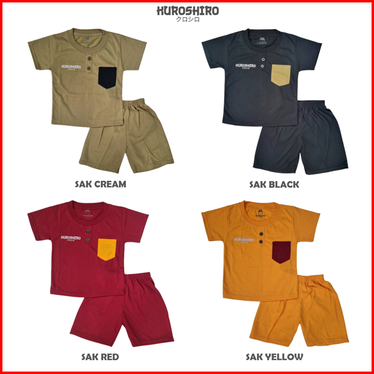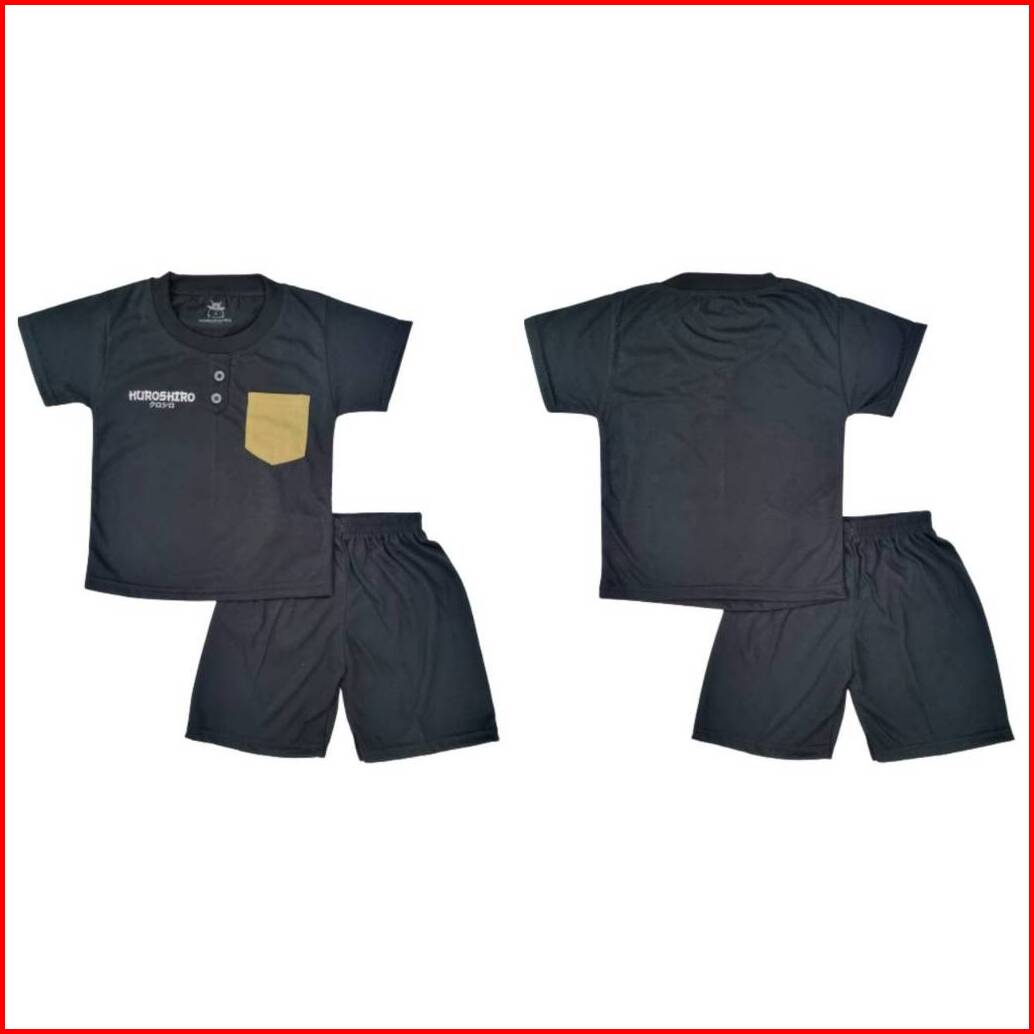 Kuroshiro - Setelan Baju Anak Laki Laki 1-9 Tahun Kancing Saku Pendek Kaos Kuroshiro