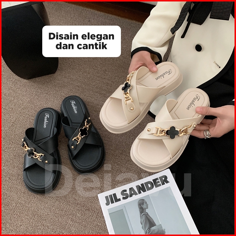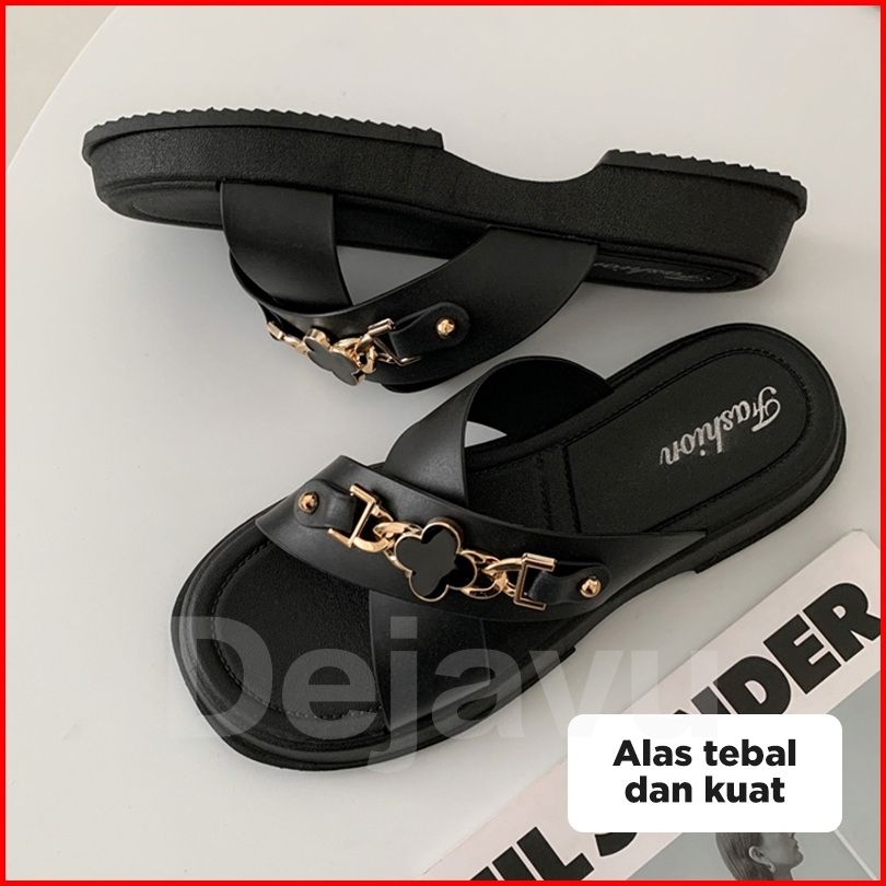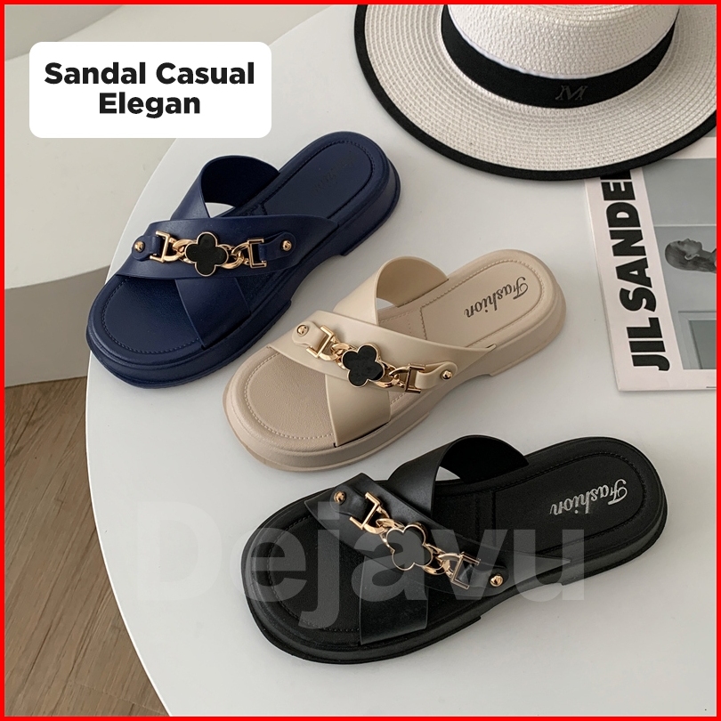 Dejavu Sendal Wanita Slop Jelly Kekinian Sandal Karet Rumah Flat Anti Slip Casual Hsn210