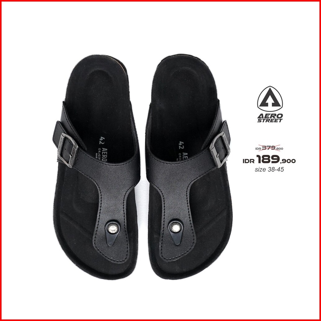 Aerostreet 38-45 Sandal Maximus Hitam Hitam - Sendal Selop Slip On Pria Wanita B1aaa