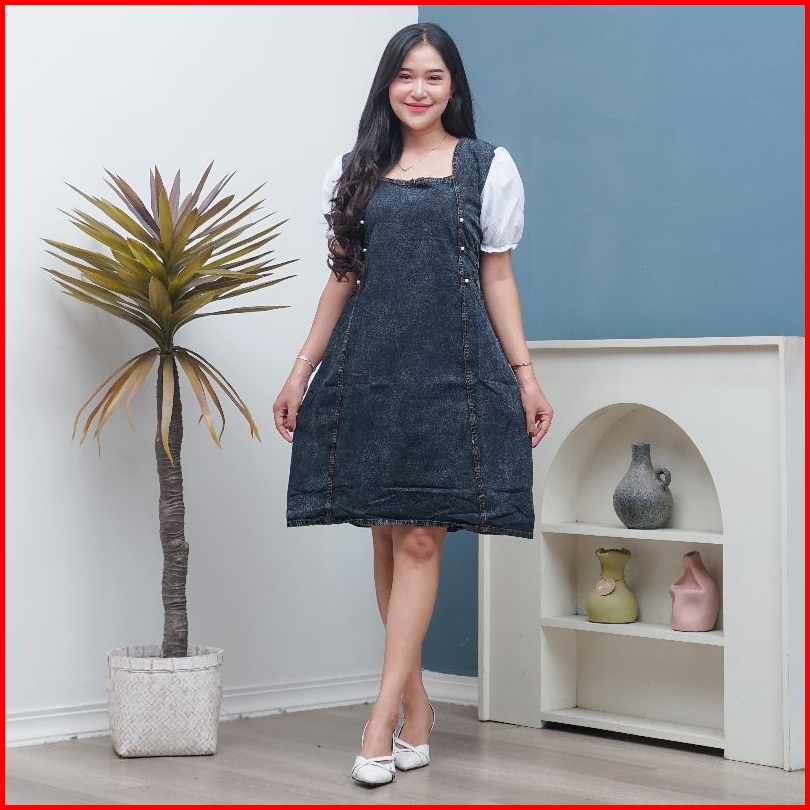 Dress Jeans Korean Denim Dress Jeans Kombinasi Ukuran L-xl-2xl-3xl