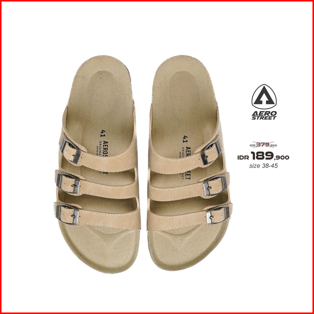 Aerostreet 38-45 Sandal Dante Krem Muda Krem - Sendal Selop Slip On Casual Pria Wanita B1baa