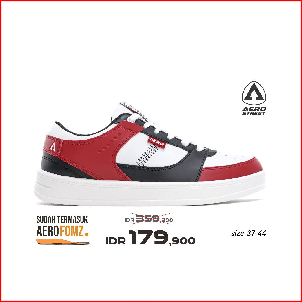 Aerostreet 37-44 Hoops Low 2.0 Putih Merah Hitam - Sepatu Sneakers Casual