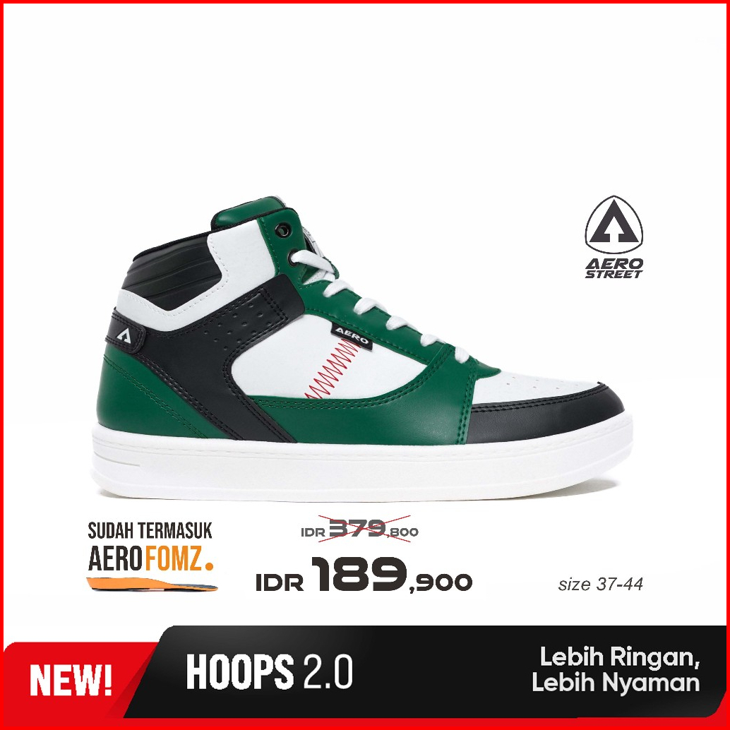Aerostreet 37-44 Hoops High 2.0 Putih Hijau Tua Hitam - Sepatu Sneakers Casual