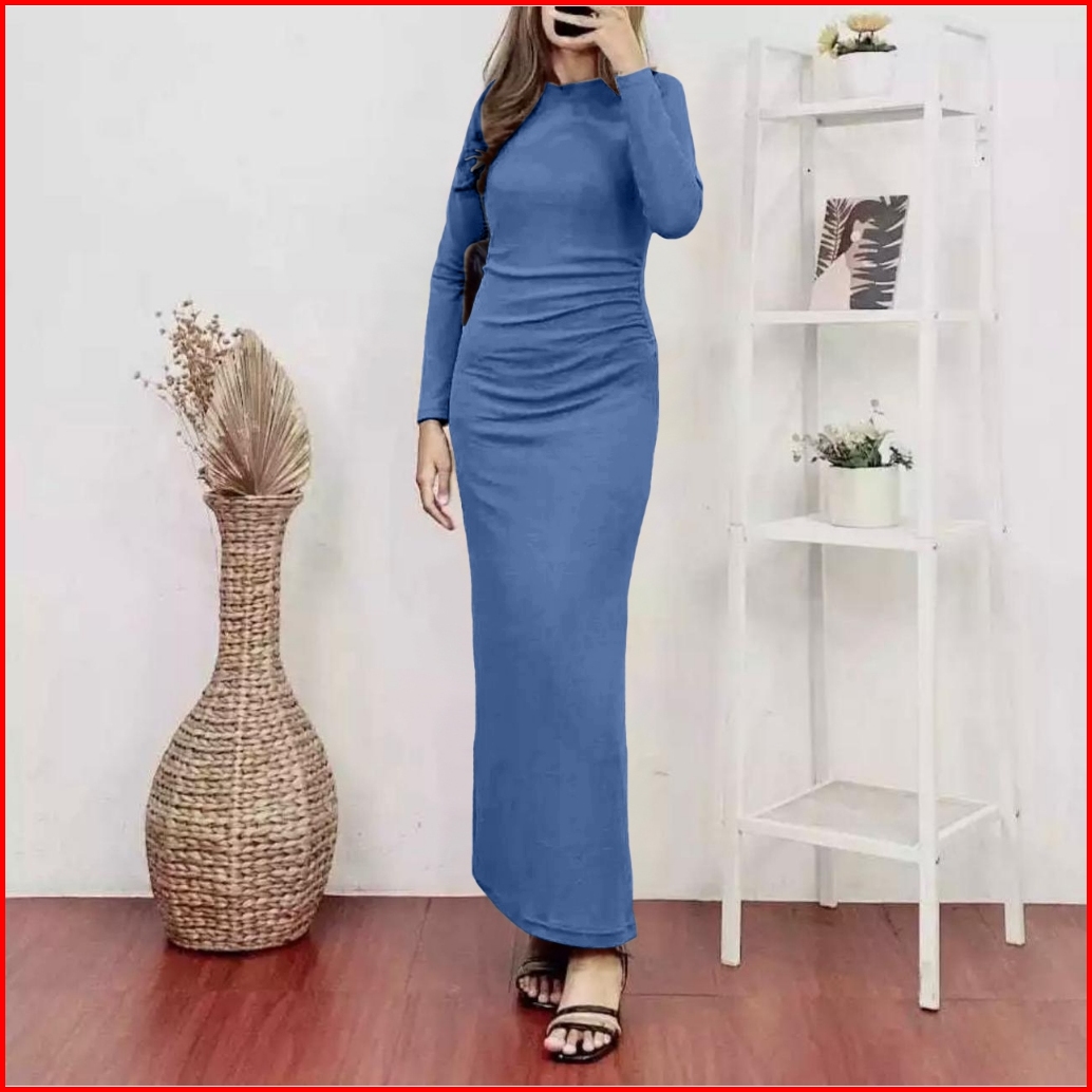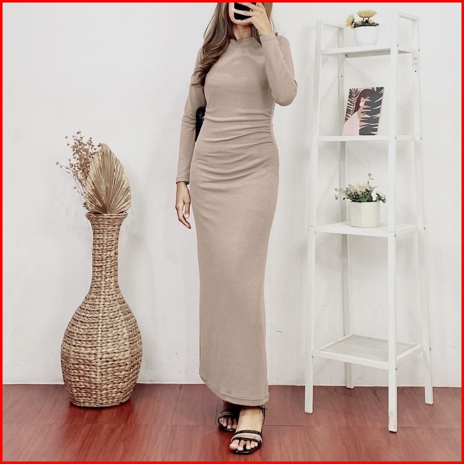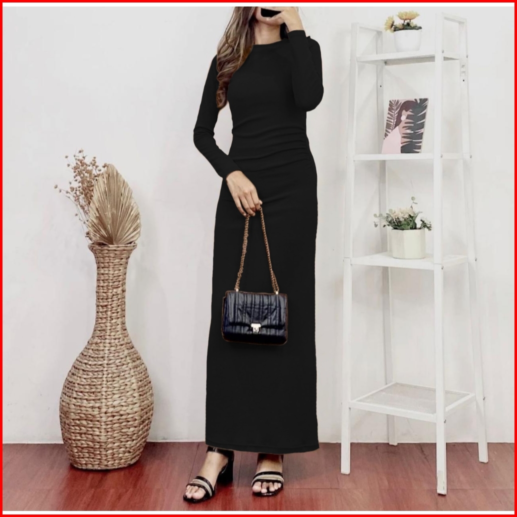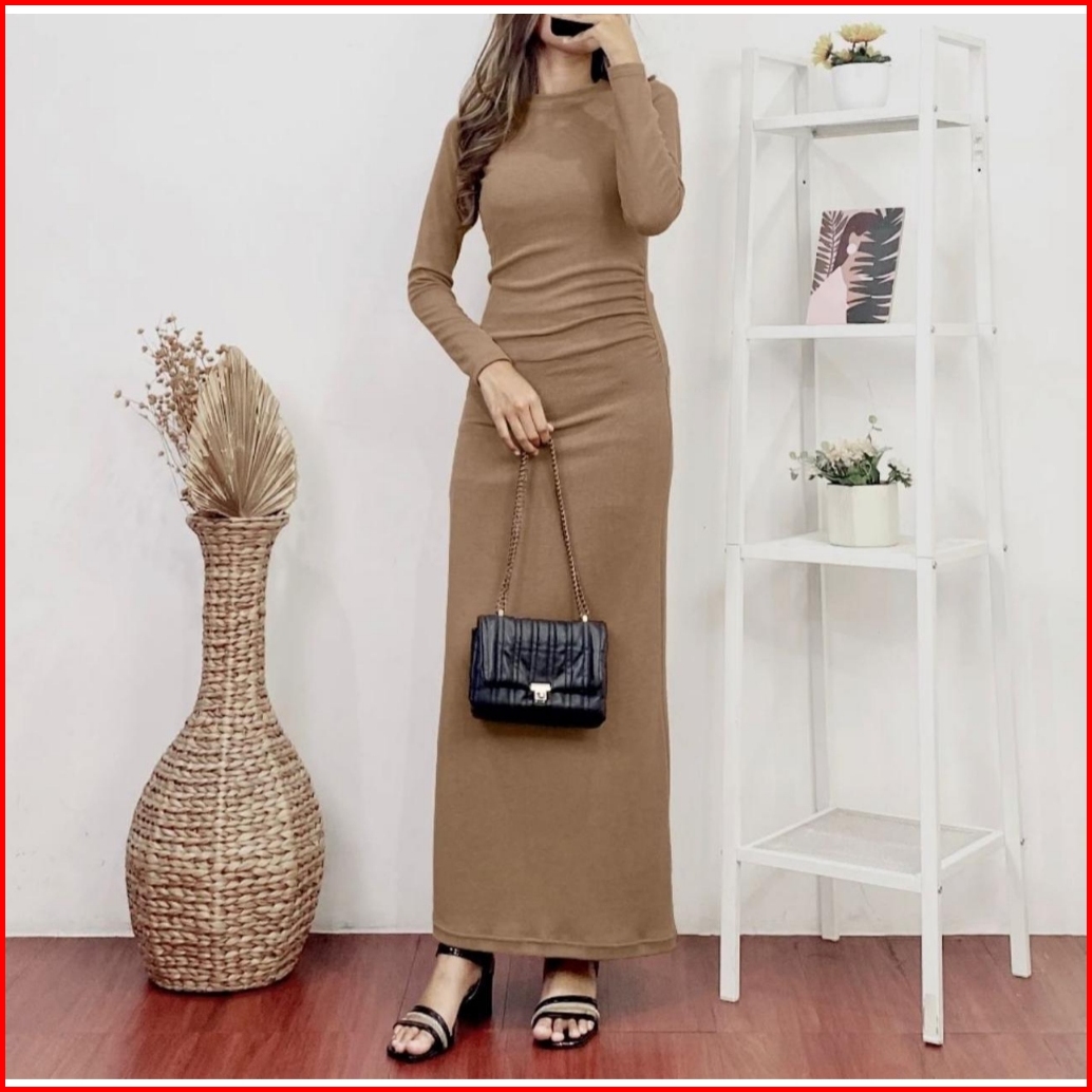 Premium Orina Long Dres Rib Knit Basic Knit Dres Uk S M L Xl Dres Bodycon Termurah