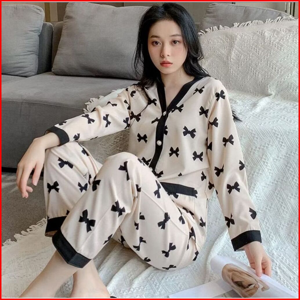 Cessy Piyama Wanita Import Bahan Satin Premium Lengan Celana Panjang Full Kancing Pearl 005