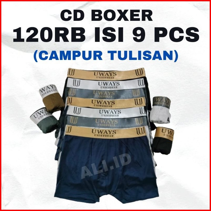 Promo Banting Harga 9 Pcs 120rb Cd Boxer Pria Karet Pinggang Campur Tulisan.