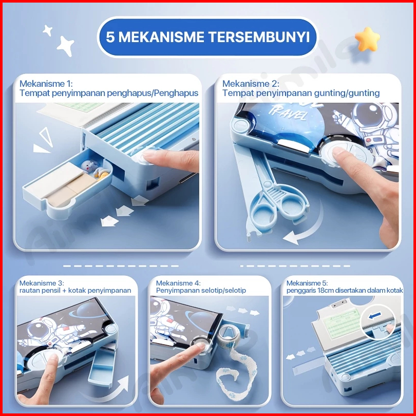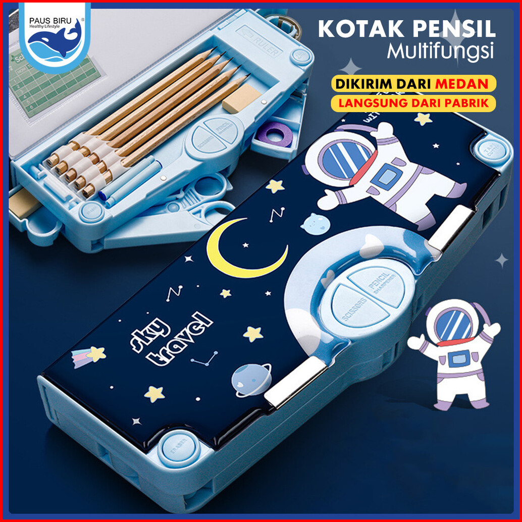 Paus Biru Medan - Kotak Pensil Multifungsi Lengkap Peruncing Gunting Isolasi Penghapus Penggaris
