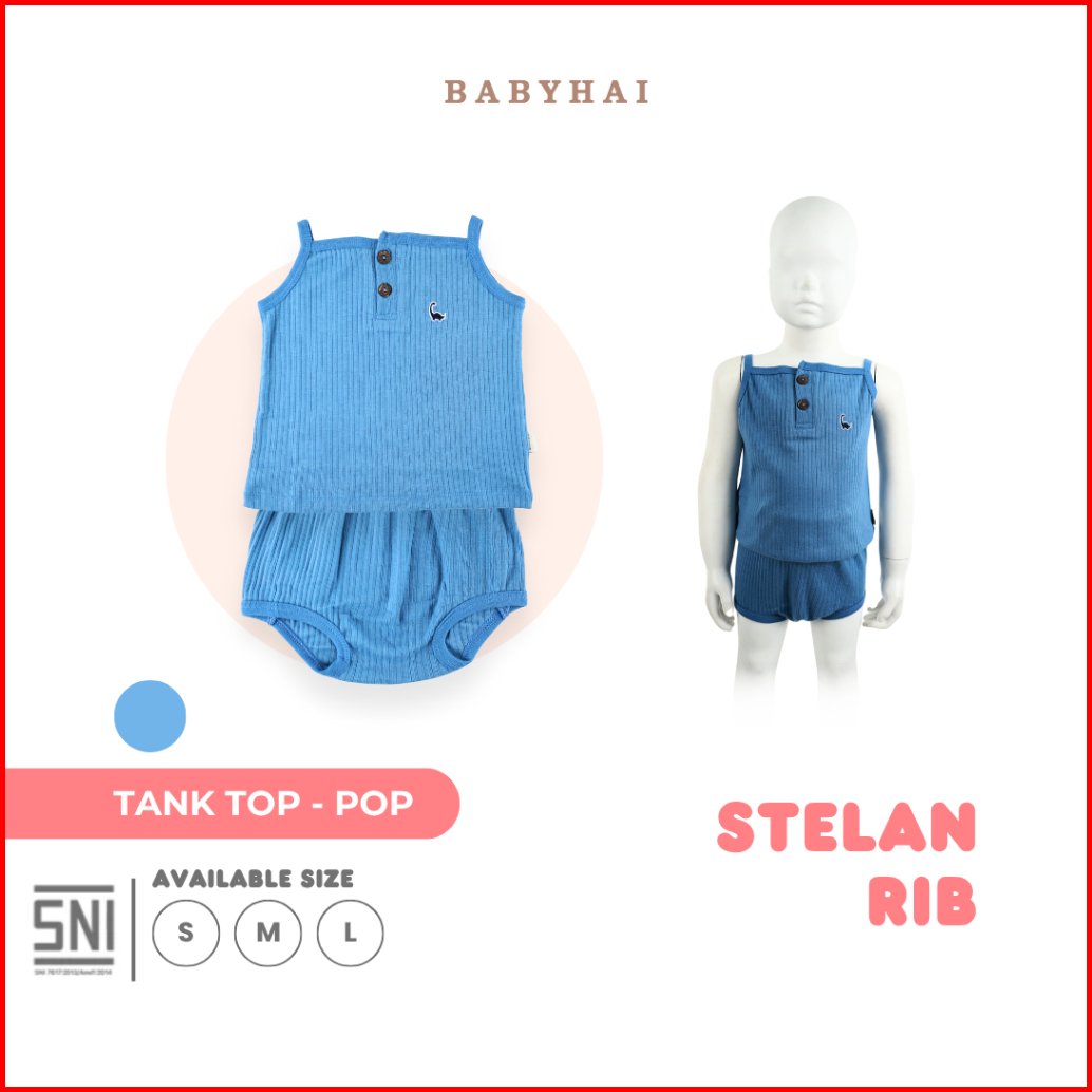 Baby Hai Rib Suit - Setelan Tank Top Salur Baju Pendek Celana Pop - Seri Biru
