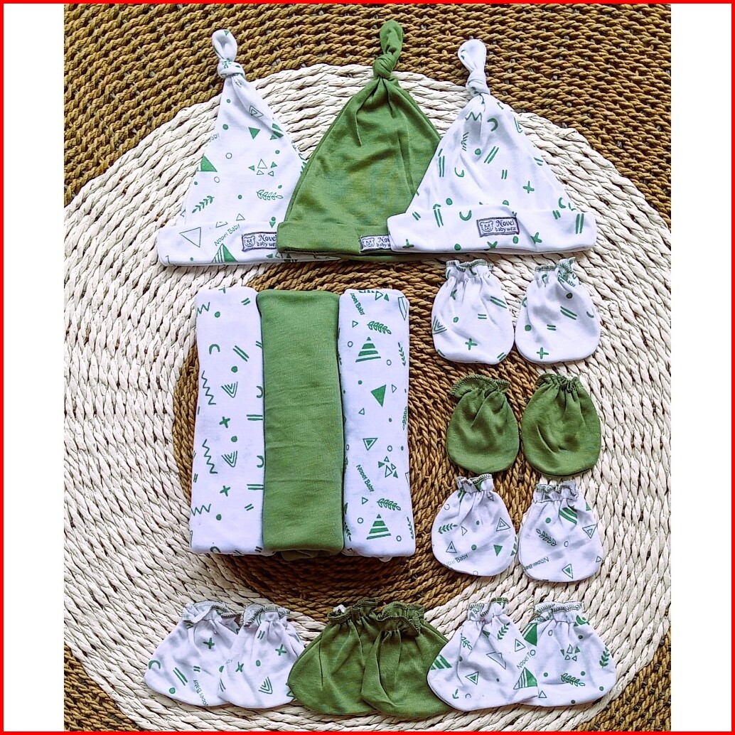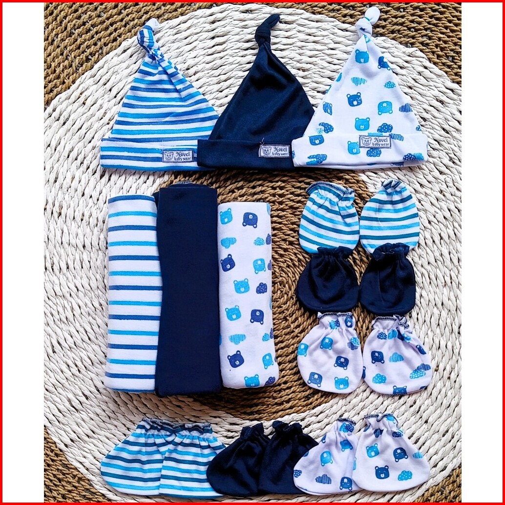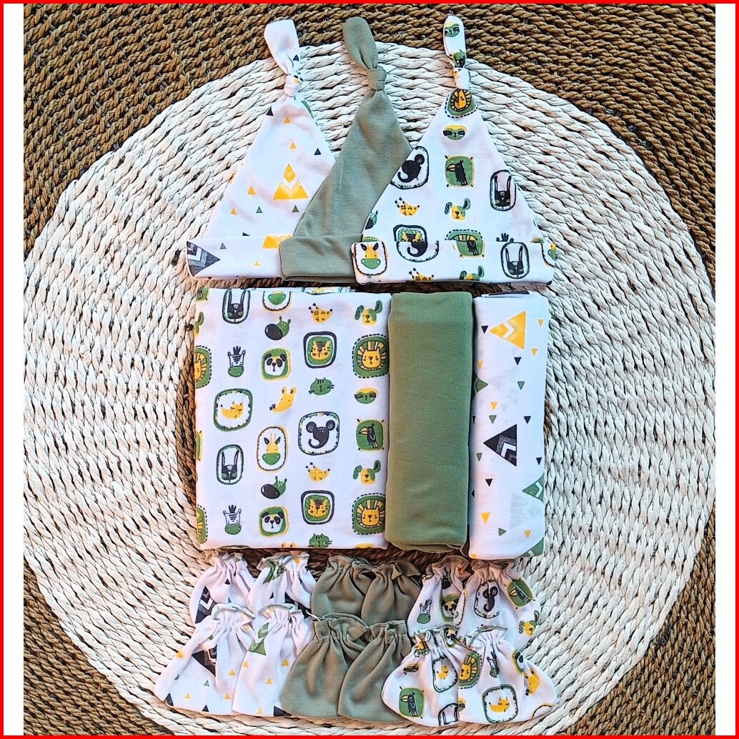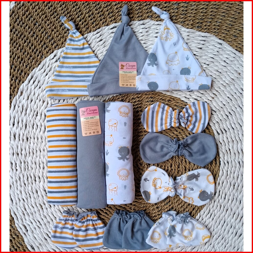 Paket Hemat 12 Pcs Bedong Set Topi Sarung Tangan Kaki Bayi Baru Lahir Newborn