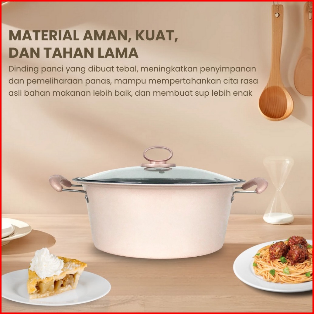 Panci Sup Enamel Dengan Tutup Kaca Panci Sup 20cm Dan 22cm 18cm 24cm Mudah Dibersihkan