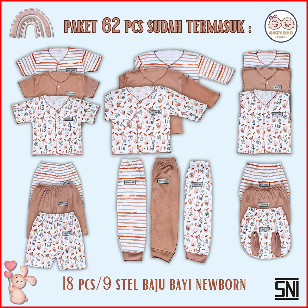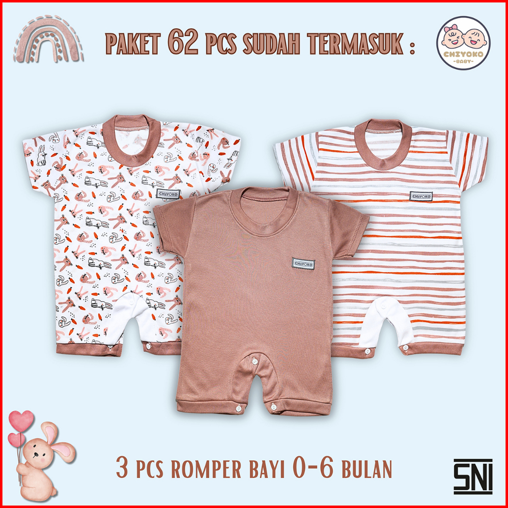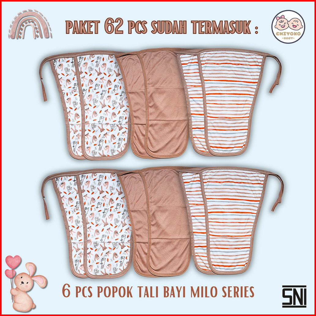 62 Pcs Paket Hemat Perlengkapan Baju Bayi Baru Lahir Serian Milo Terkomplit Sni Chiyokobaby