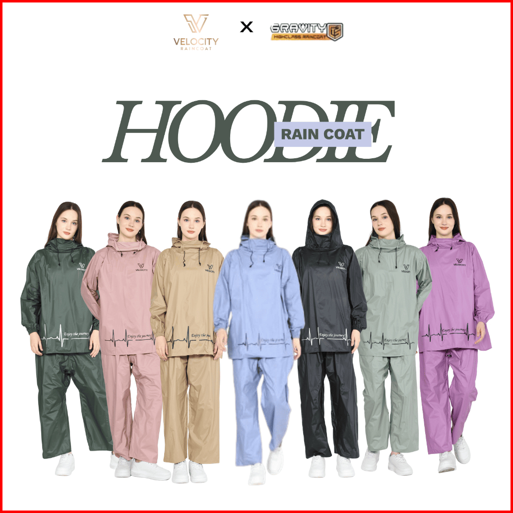 Velocity Jas Hujan Hoodie Setelan Celana Anti Rembes Pria Wanita Dewasa Tebal By Gravity