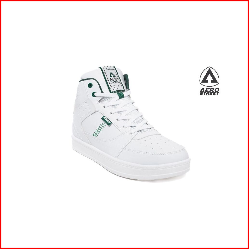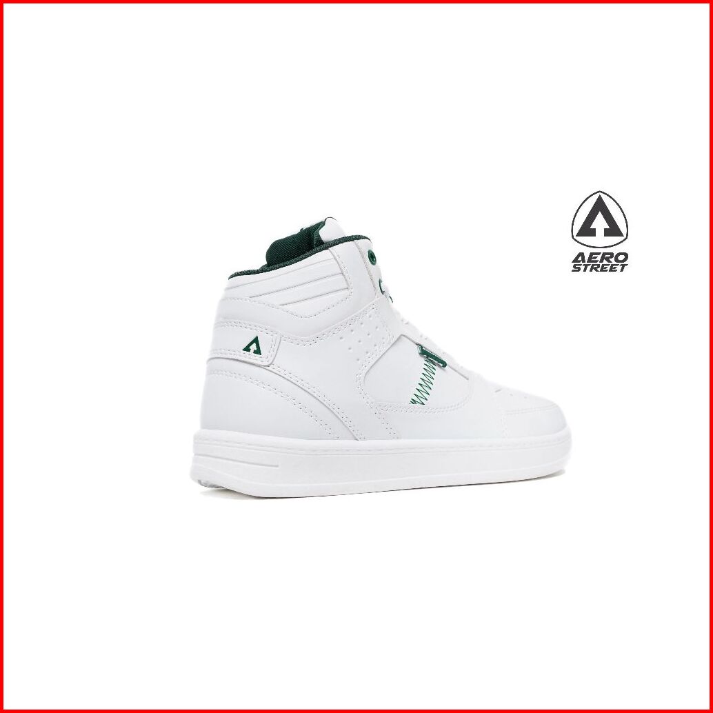 Aerostreet 37-44 Hoops High 2.0 Putih Putih Hijau Tua - Sepatu Sneakers Casual