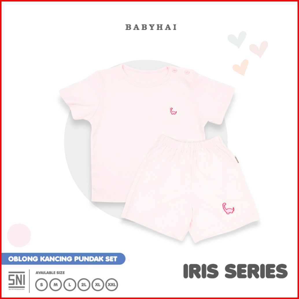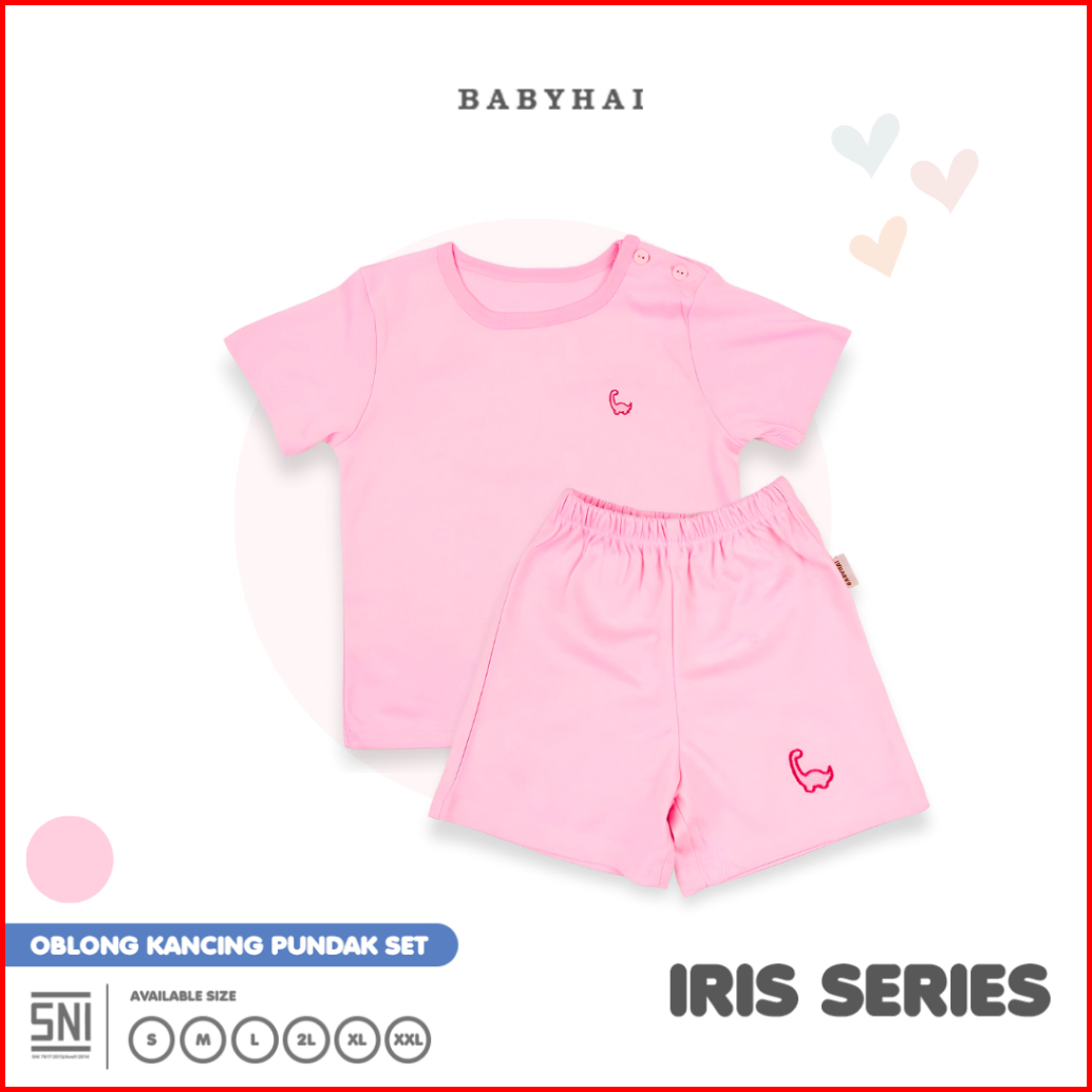 Baby Hai Iris Set - Setelan Kancing Pundak Polos Baju Pendek Celana Pendek - Seri Pink