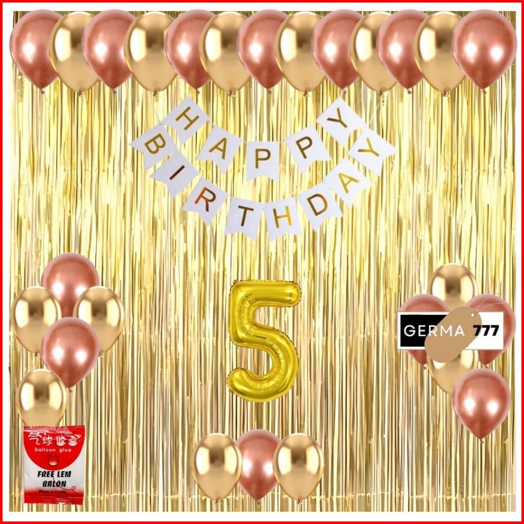 Paket Set Dekorasi Balon Pesta Ulang Tahun Banner Happy Birthday Hitam Putih Tirai Rosegold
