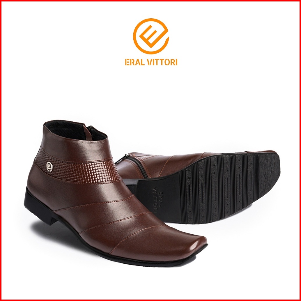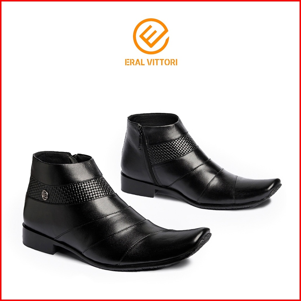 Eral Vittori - Lecter 016 Sepatu Pantofel Boots Tinggi Pria Resleting Samping Formal Kulit Asli