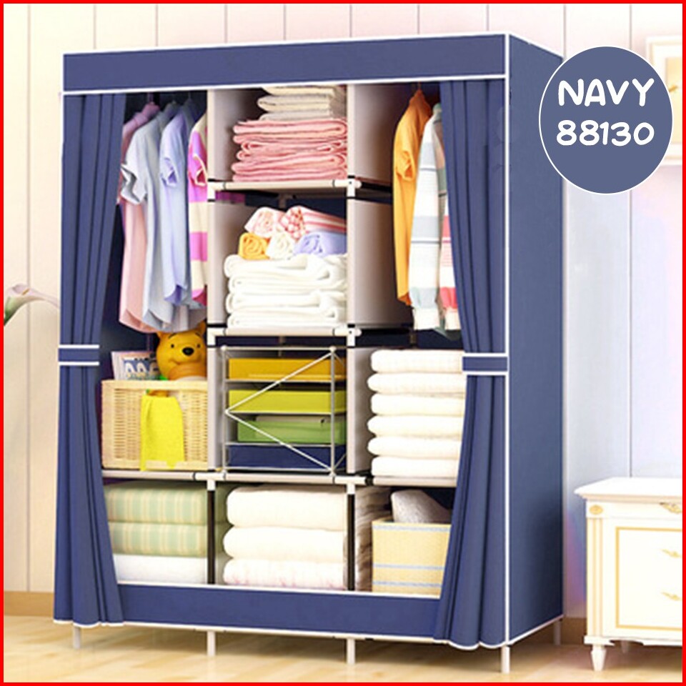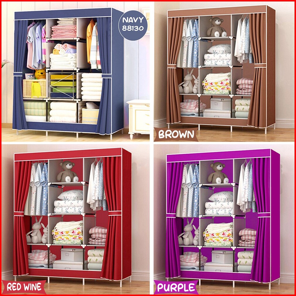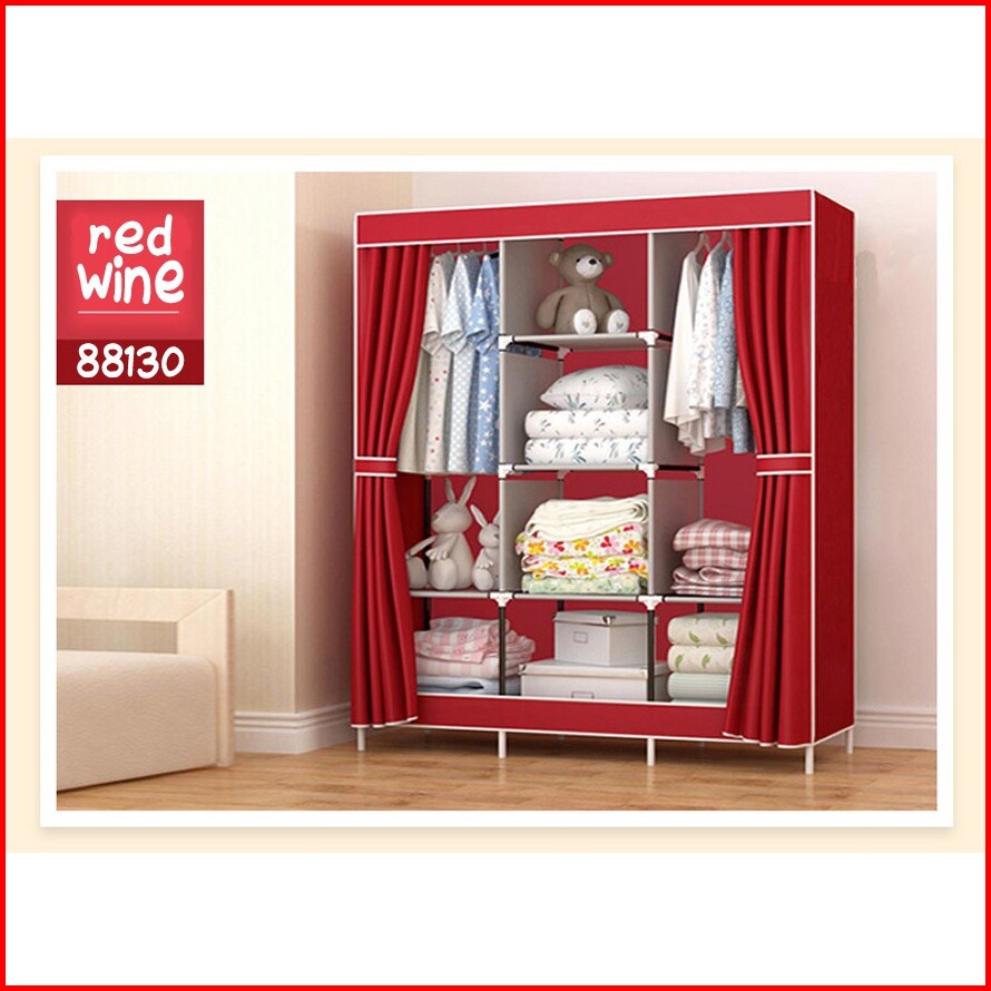 Lemari Pakaian Jumbo Dengan Gantungan Besar Rak Pakaian Dewasa Lemari Kain 3 Pintu Sliding