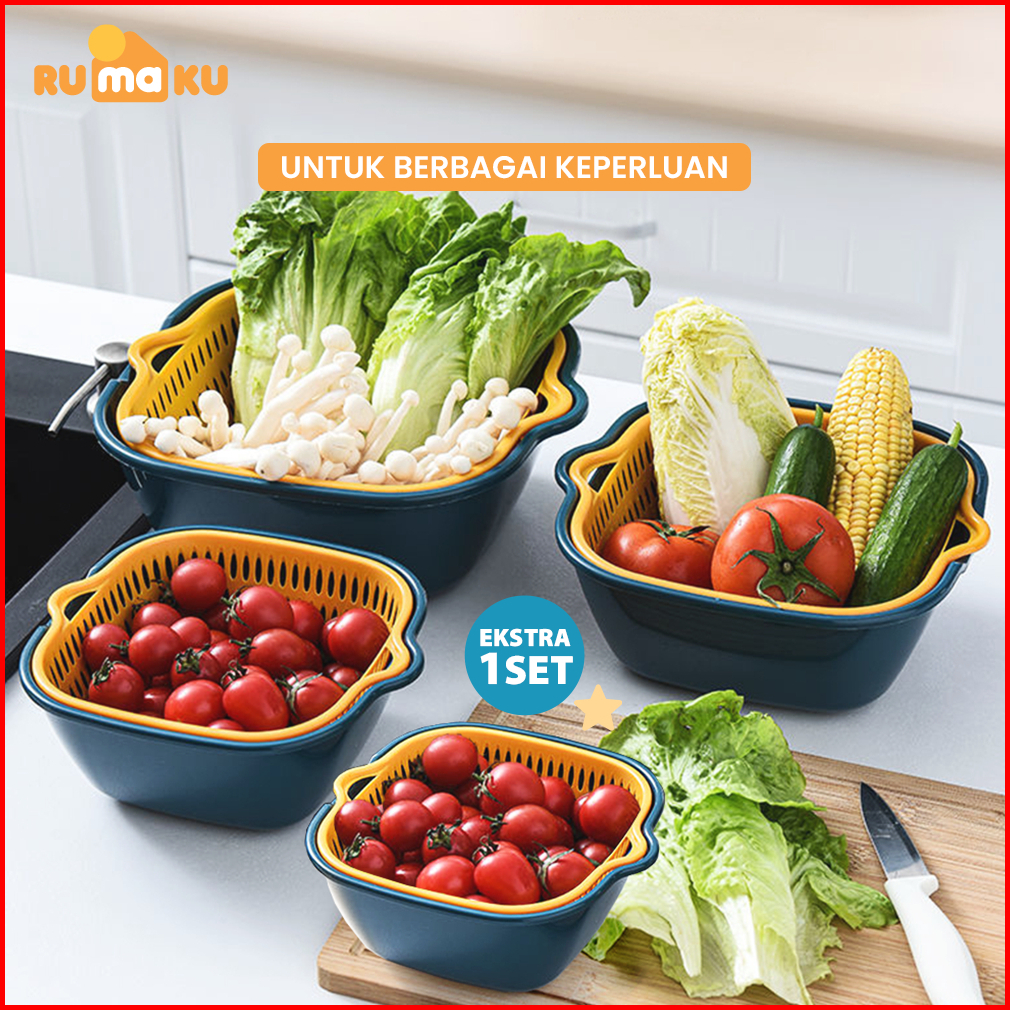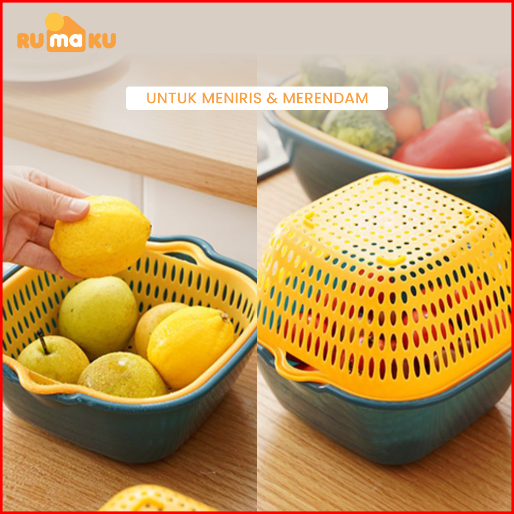 Rumaku Baskom Sayur Plastik 8in1 Serbaguna Keranjang Saringan Cuci Buah Multifungsi Bebas Bpa