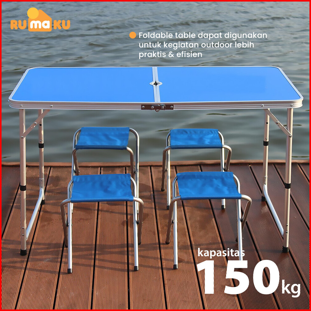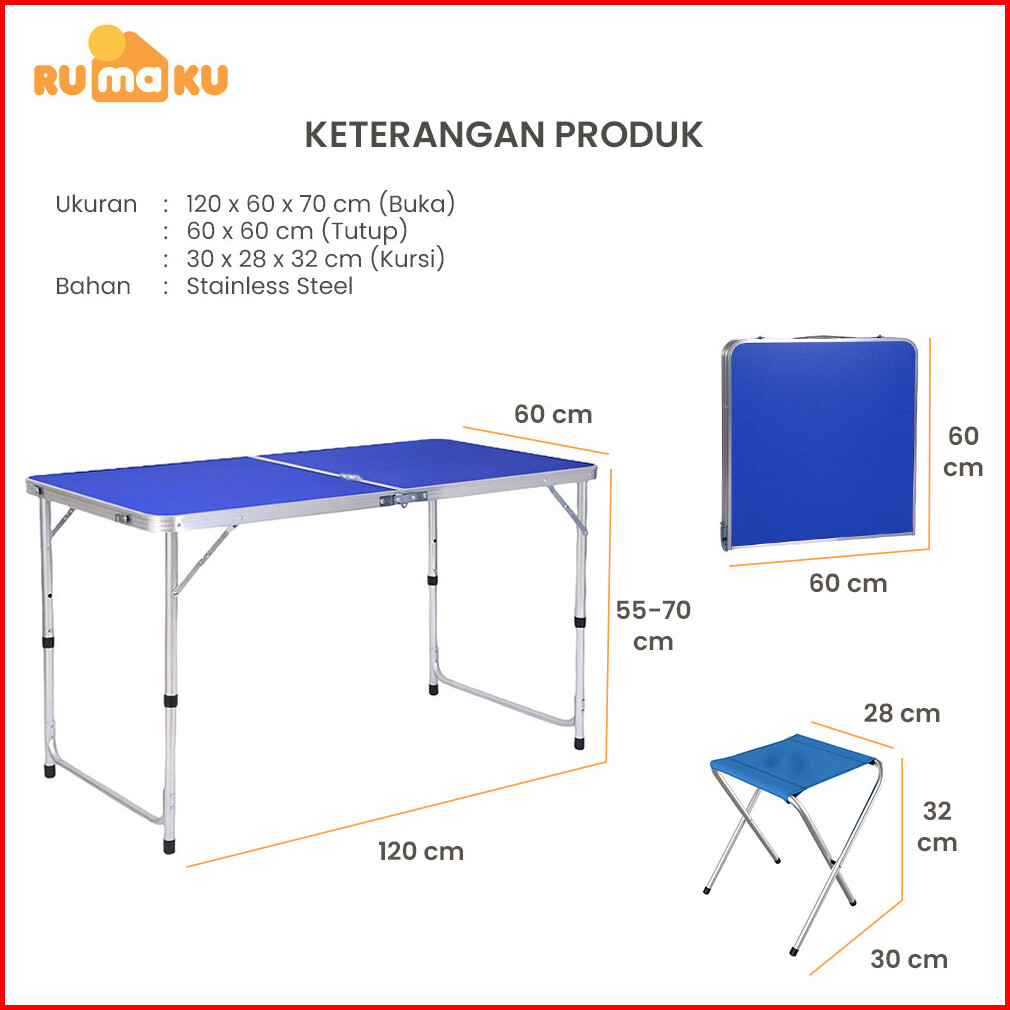 Rumaku Meja Lipat Jualan Outdoor Piknik Camping Foldable Desk Portable Model Koper Free 2 Kursi