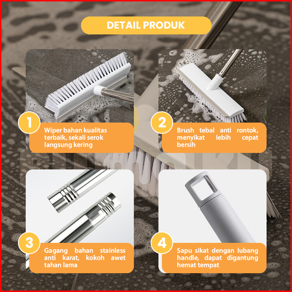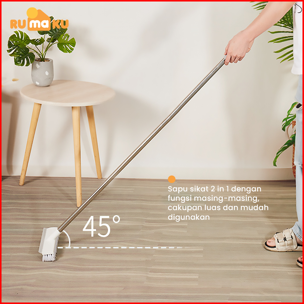Rumaku Sapu Sikat Lantai 2in1 Gagang Panjang Stainless Anti Karat Pembersih Kamar Mandi Toilet Dapur