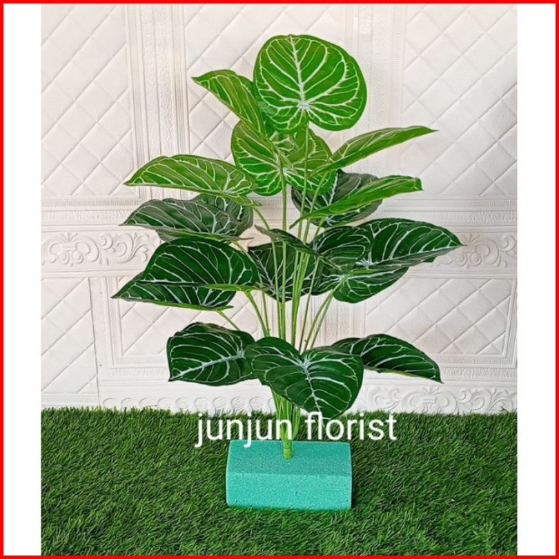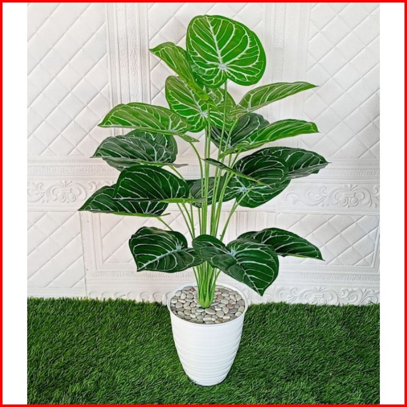 Tanaman Hias Keladi Hijau Garis Putih Artificial Vas Tawon