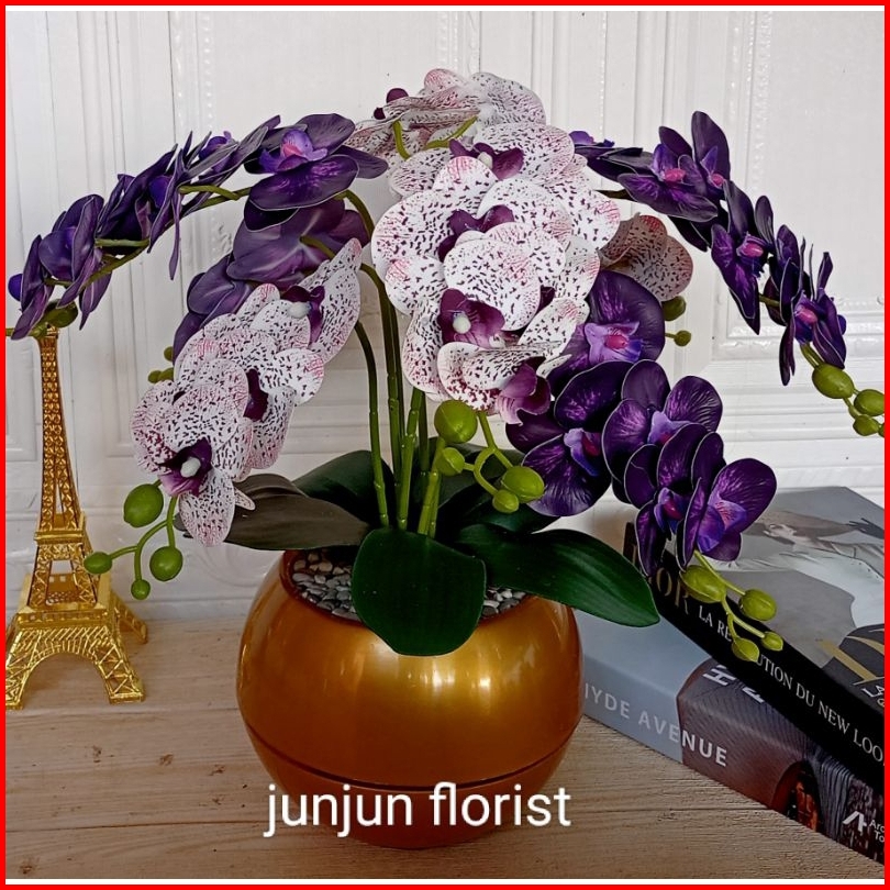Satu Set Bunga Anggrek Latex 8 Cabang Vas