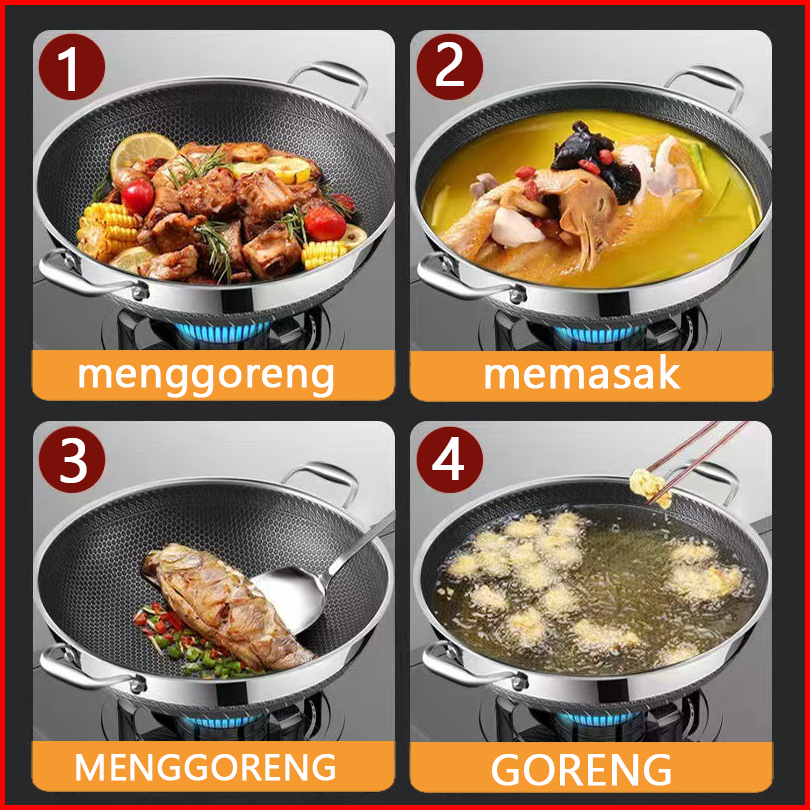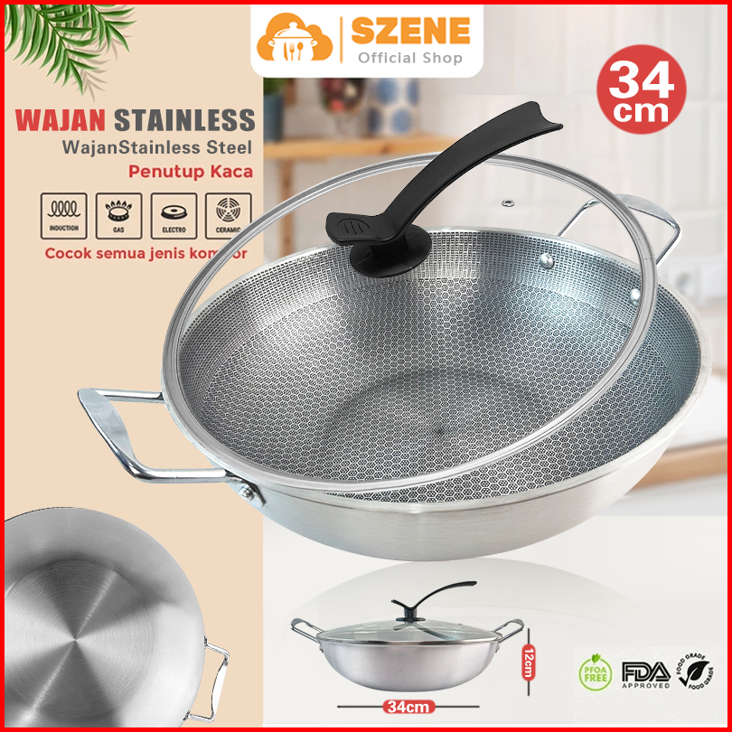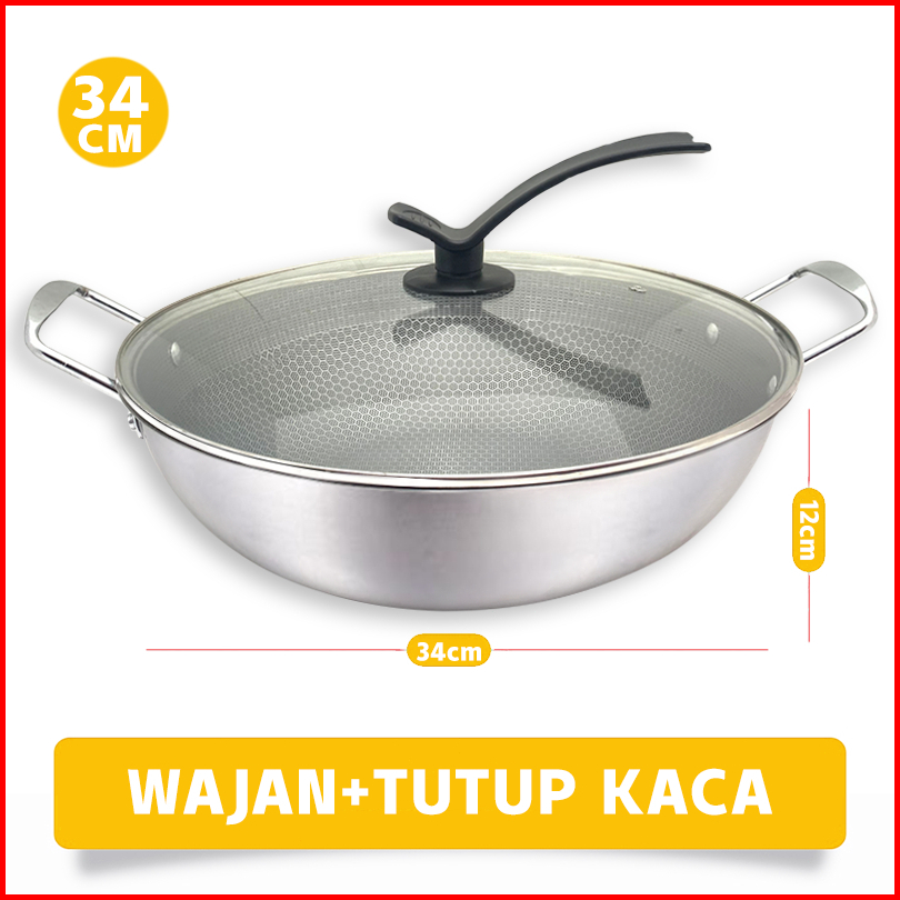 Wajan Penggorengan 34cm Anti Lengket Stainless Steel Ukuran Struktur Sarang Lebah Wajan Dengan Penutup