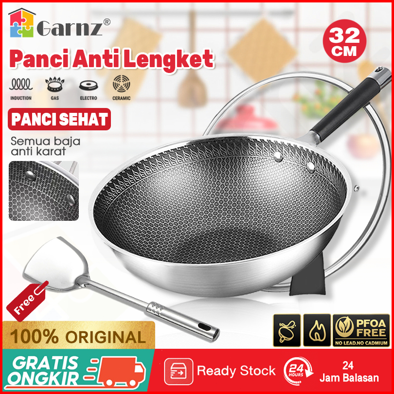 Wajan Penggorengan Teflon Masak Gagang Hitam Laba Tahan Panas Panci Stainless Steel Baja Panci Keramik Kitchenware Kaca