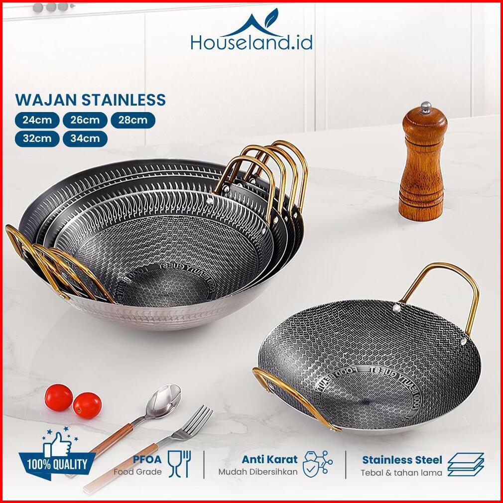 Wajan Motif Silver Penggorengan Kuali Mini Stainless Steel Gagang Kuping 20 24 28 Cm