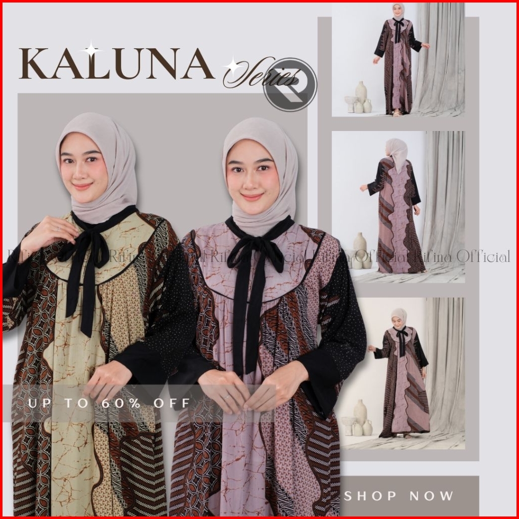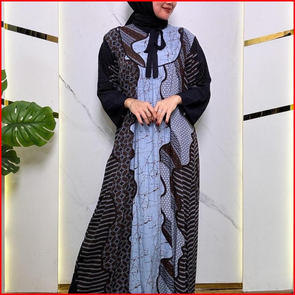 Rifina Store Kaluna Dress Rayon Premium Motif Batik Klasik Busui Bumil Friendly Adem Nyaman