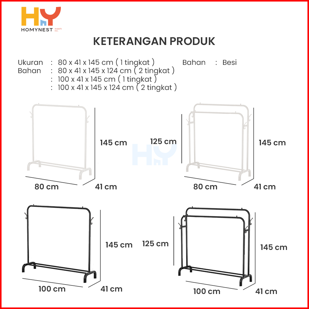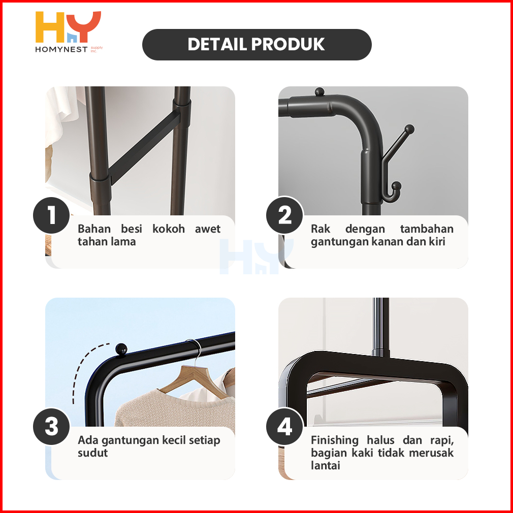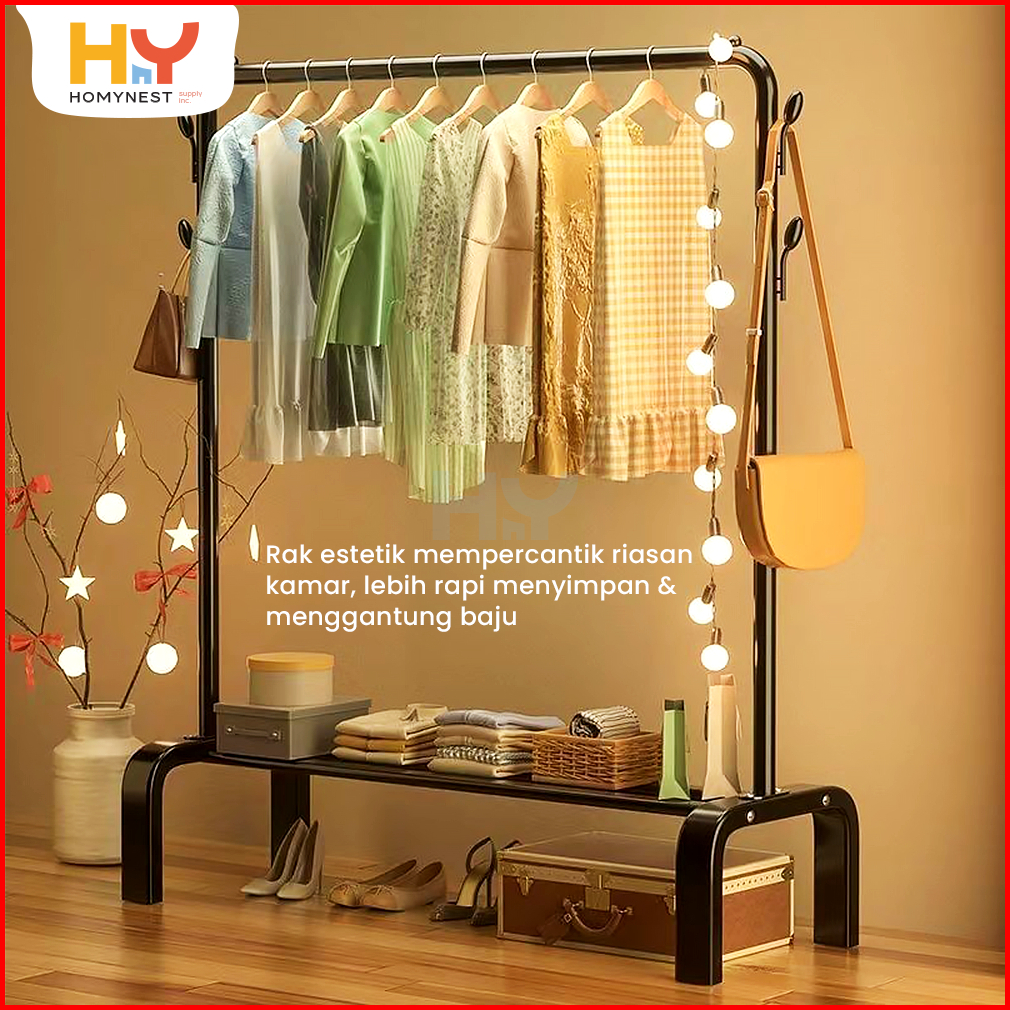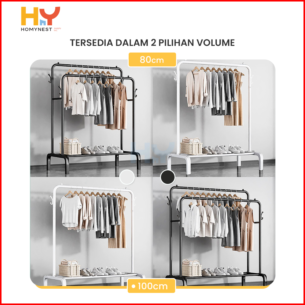 Homynest Stand Hanger Rak Gantungan Baju Serbaguna Bahan Besi Single Double Layer Gawang Baju Premium Berkualitas