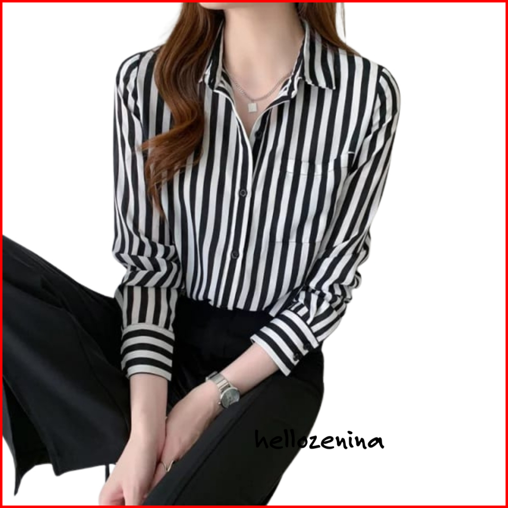 Keina Kemeja Lengan Panjang Wanita Motif Garis Women Shirt Hellozenina