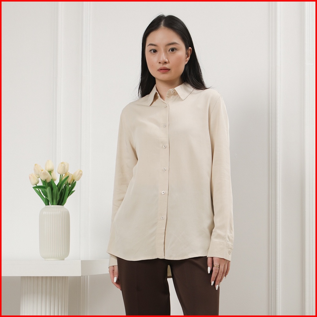 Jasmine Shirt By Sonia F18038a Kemeja Rayon Premium Lengan Panjang Wanita Kemeja Basic Kantor Formal Basic Kemeja Rayon