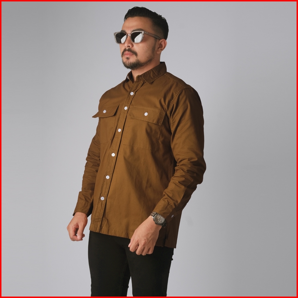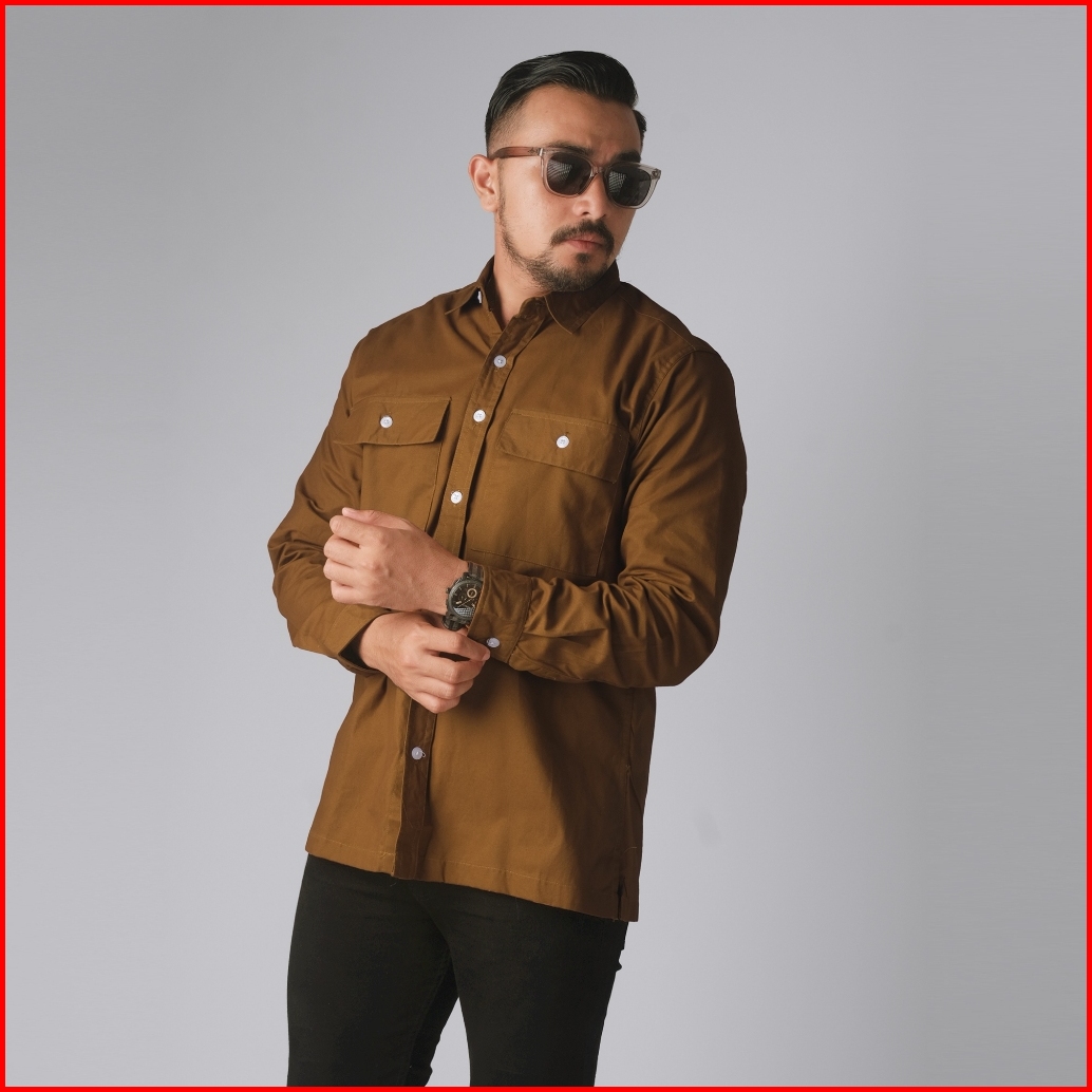 Dgm Kemeja Polos Pria Double Pocket Lengan Panjang Katun Twill 30s Premium Workshirt Kemeja Kerja Caramel 2687