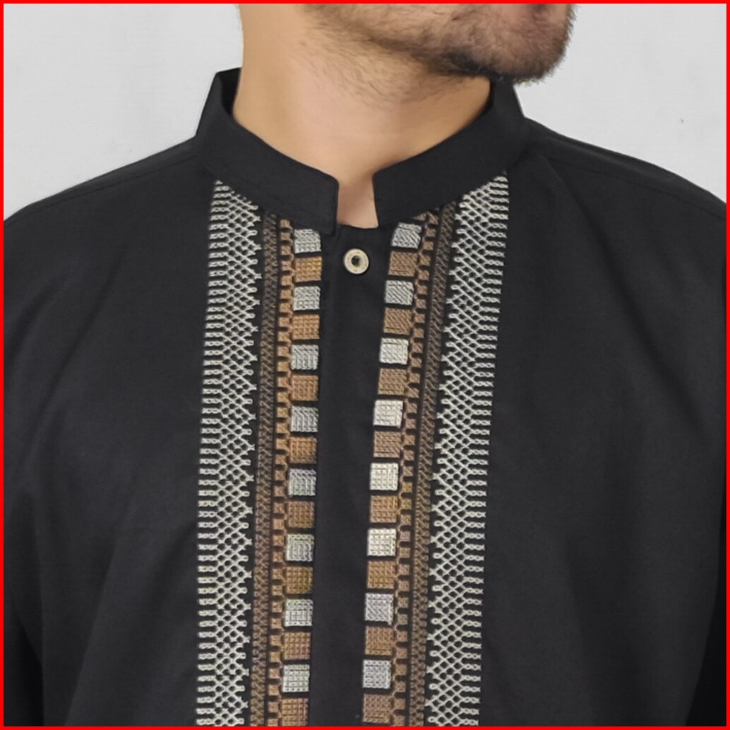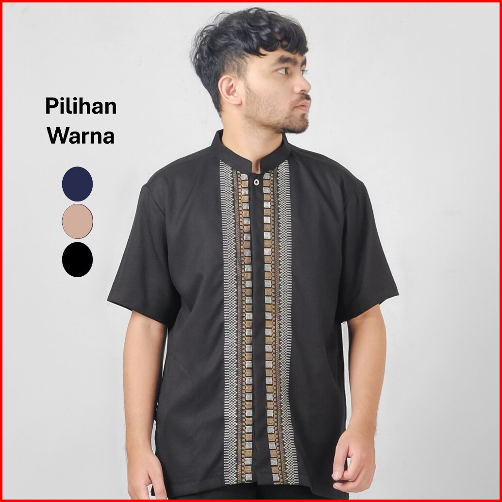 Uzma Baju Koko Kemko Muslim Pria Katun Madinah Lengan Pendek Warna Navy Krem Hitam