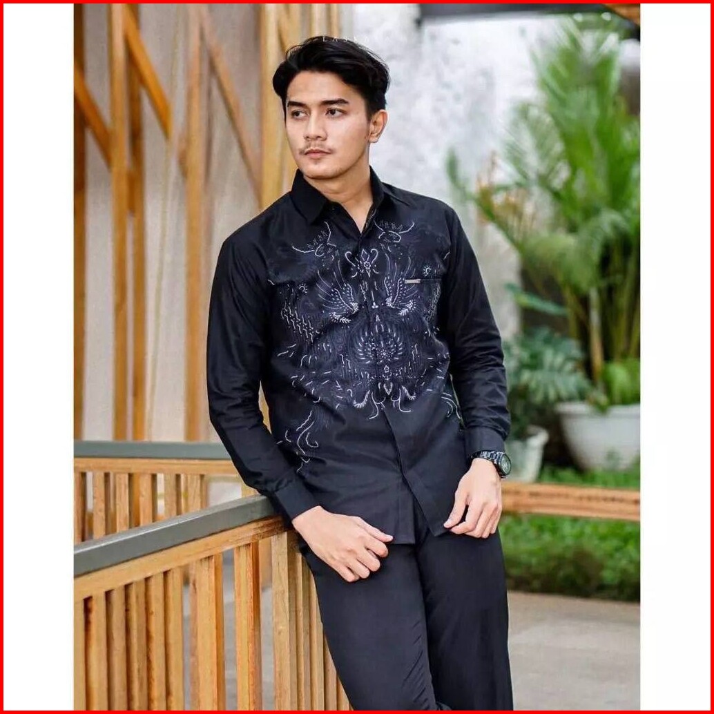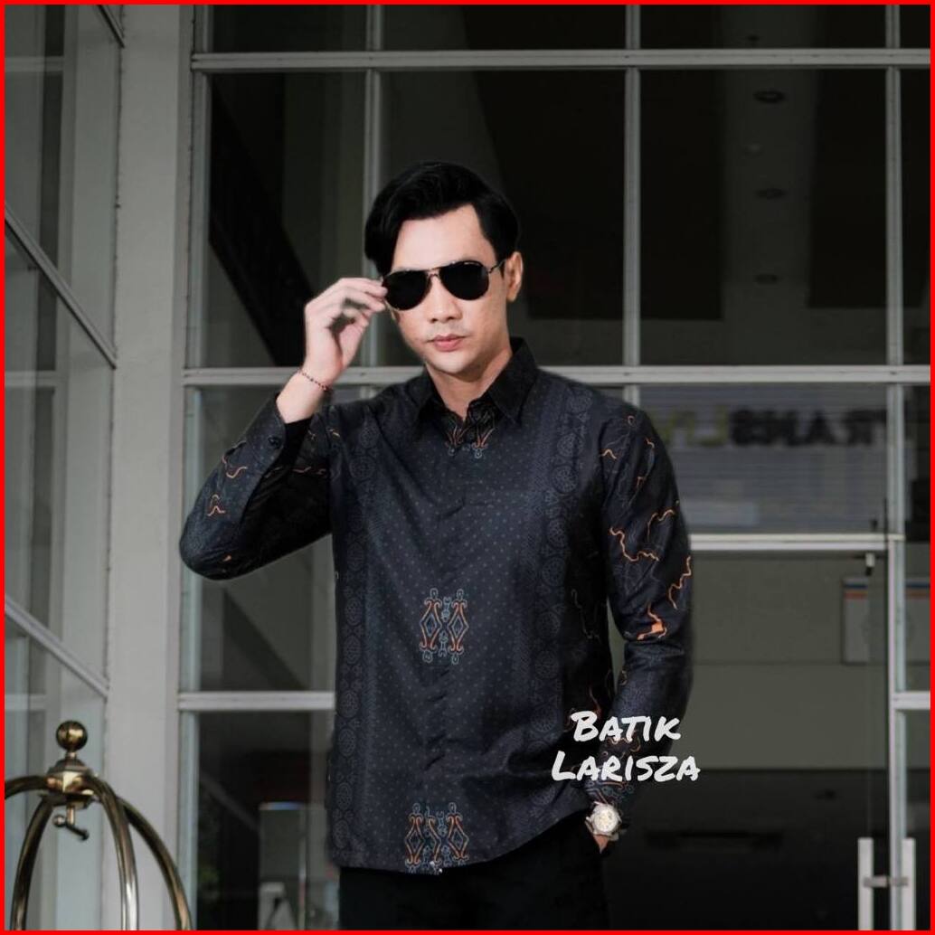 Dolbatik - Kemeja Batik Lengan Panjang Pria Hitam Kerja Kondangan