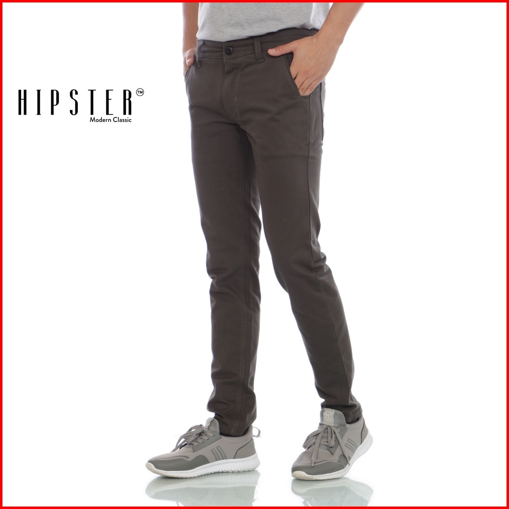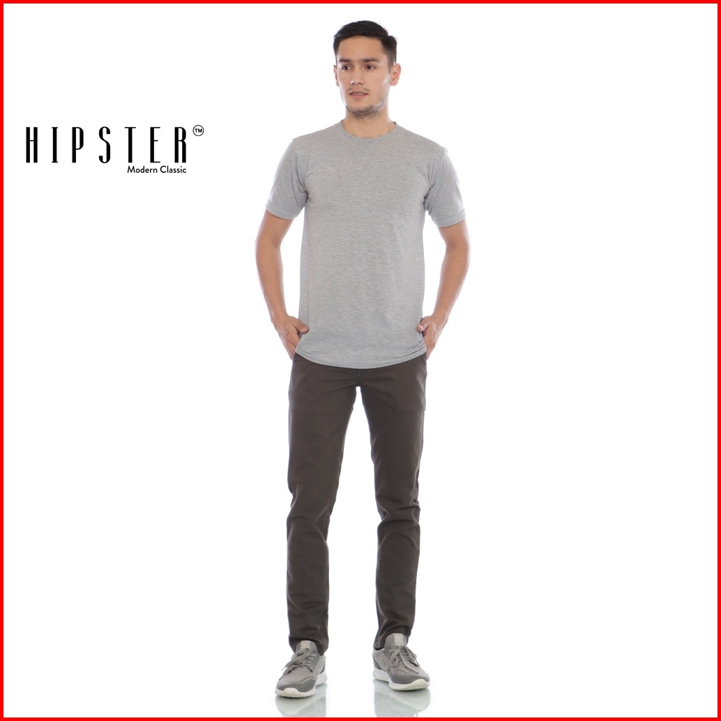 Hipster Celana Chinos Pria Canada Slim Fit Basic Abu Tua