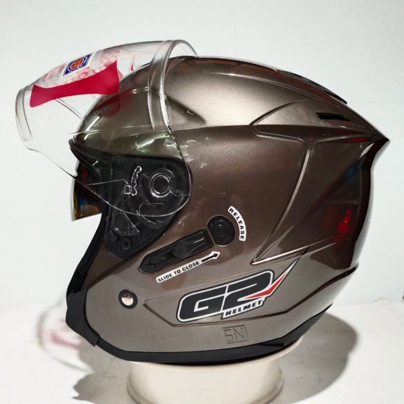 Helm Half Face G2 Optimax Solid Original Kaca Double Visor