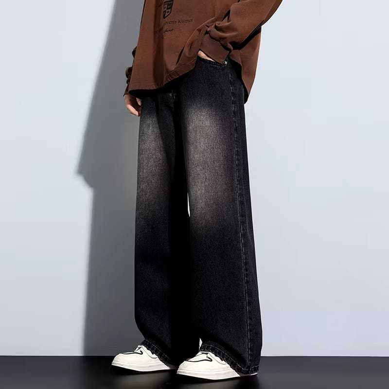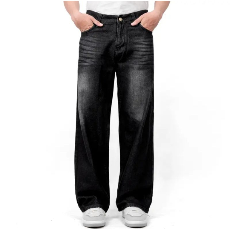 Celana Jeans Pria Panjang Baggy Snow Black Original Loose Straight