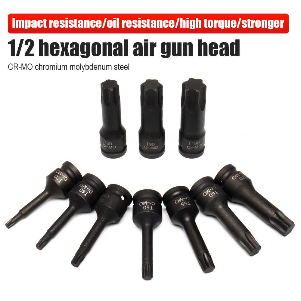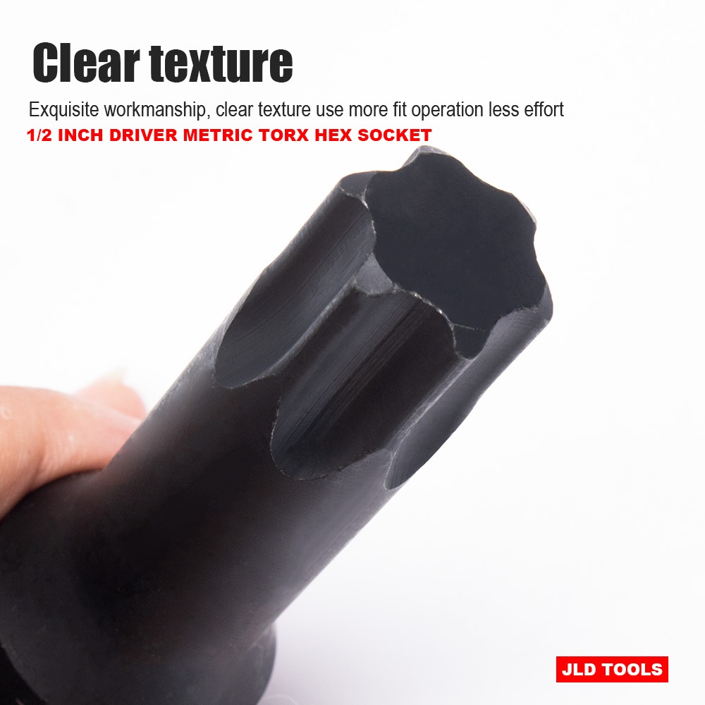 JLD 10PCS Mata Socket Impact Socket Bits 1/2Inch Driver Metric Torx Hex Socket T30-T100 Cr-Mo Steel, Heavy Duty Storage